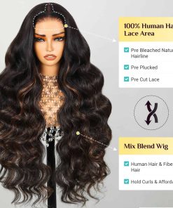 2. Peluca de Mezcla de Resaltado P1B/30 Material: peluca de fibra premium con mezcla de cabello humano, artesanía profesional, se siente como cabello humano al tacto, sin enredos, sin caídas, mantiene muy bien el estilo de onda del cuerpo. Muy suave, sedoso, cómodo para la piel, natural, moderno, te hace más encantadora.