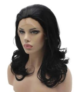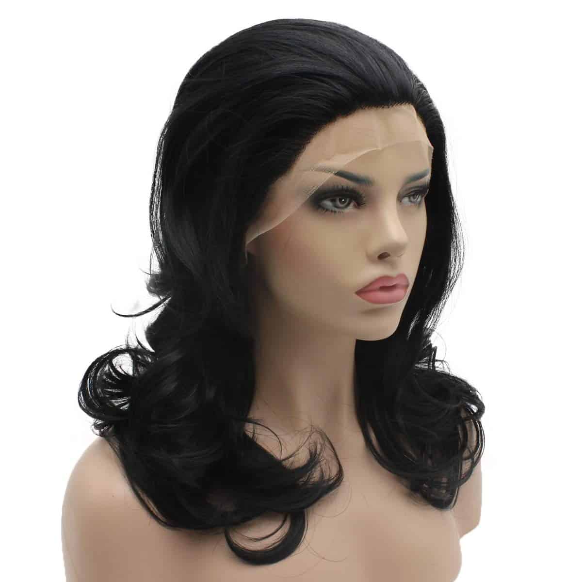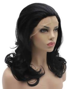 Pelucas de Encaje de Sintético Negro de Media Longitud