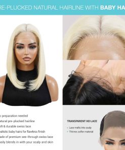 Pelucas Frontales de Encaje Invisible HD GLAM21USA 13X6 Frontal Transparente Recta Bob de Longitud de Hombro Mezcla de Cabello Humano Preplucked Swiss-Lace – Brianna
