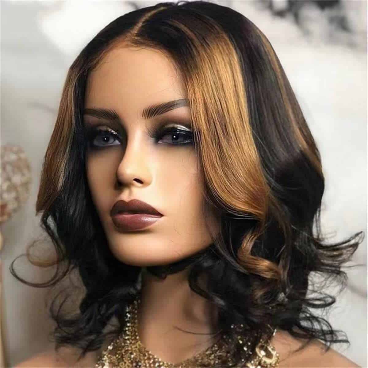 3. Estilo Natural de Dos Tonos con Color de Reflejos en Onda: La peluca de ondas naturales con densidad del 160% toca más suave y esponjosa, el estriado en dos tonos ombre se ve más realista y excelente. Se siente como cabello y cuero cabelludo humano. Libre de sustancias dañinas, te brinda más encanto.