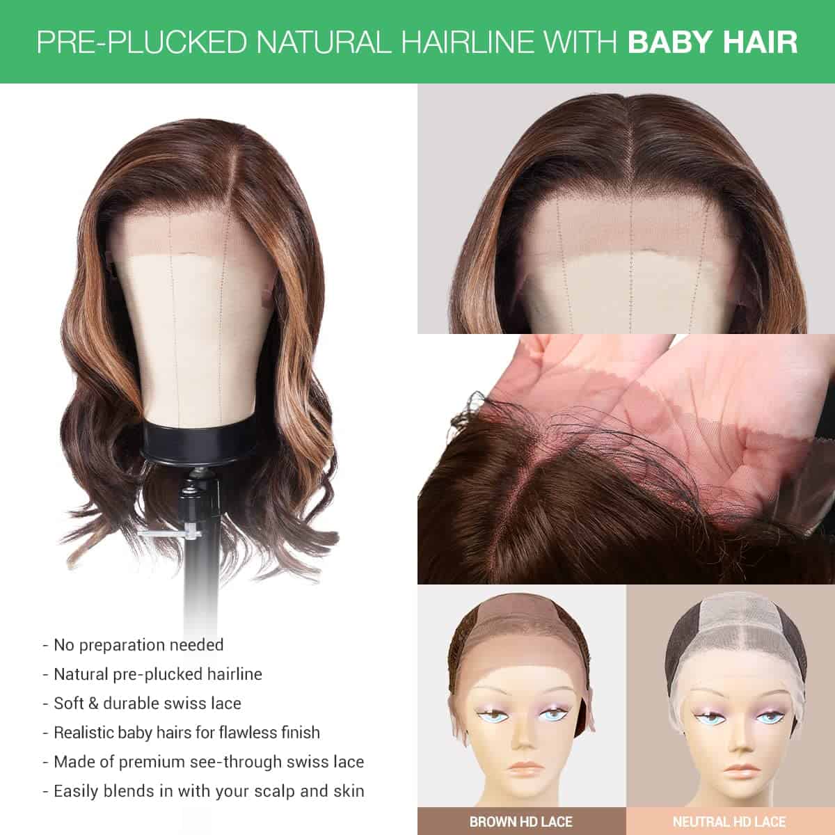 Nuestra peluca de encaje frontal HD 13X6 está diseñada con materiales de alta calidad para brindarle un aspecto natural y cómodo. La gorra de encaje HD de 13X6 proporciona un espacio de separación más largo y profundo, una construcción de gorra transpirable y ligera para mayor comodidad y facilidad de uso. Con 1 peine en la parte trasera y 2 peines en las orejas para brindar mayor seguridad a la peluca. Además, la peluca se puede personalizar para crear diferentes estilos y expresar tu personalidad única. Si no estás satisfecho, contáctanos y nos comprometemos a responder en 24 horas para resolver el problema. Vendedor en EE. UU.