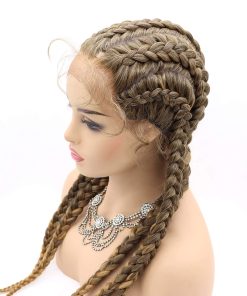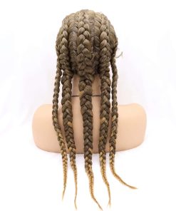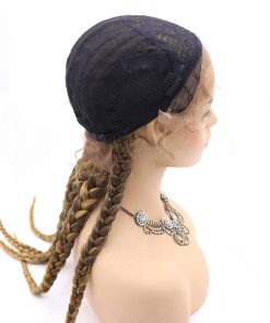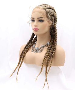 Pelucas de Encaje Frontal Sintético de Caja Trenzada Ombre Brown Blonde Sylvia de 24 pulgadas es una excelente opción para quienes buscan una peluca de calidad con un aspecto natural. Con una circunferencia de cabeza de aproximadamente 22.25″, esta peluca de tamaño mediano cuenta con correas ajustables y 3 peines para un ajuste seguro y cómodo. La peluca tiene un encaje frontal con medio encaje atado a mano, que ofrece un espacio de partición de 2.5 pulgadas en la parte delantera para un aspecto natural.
