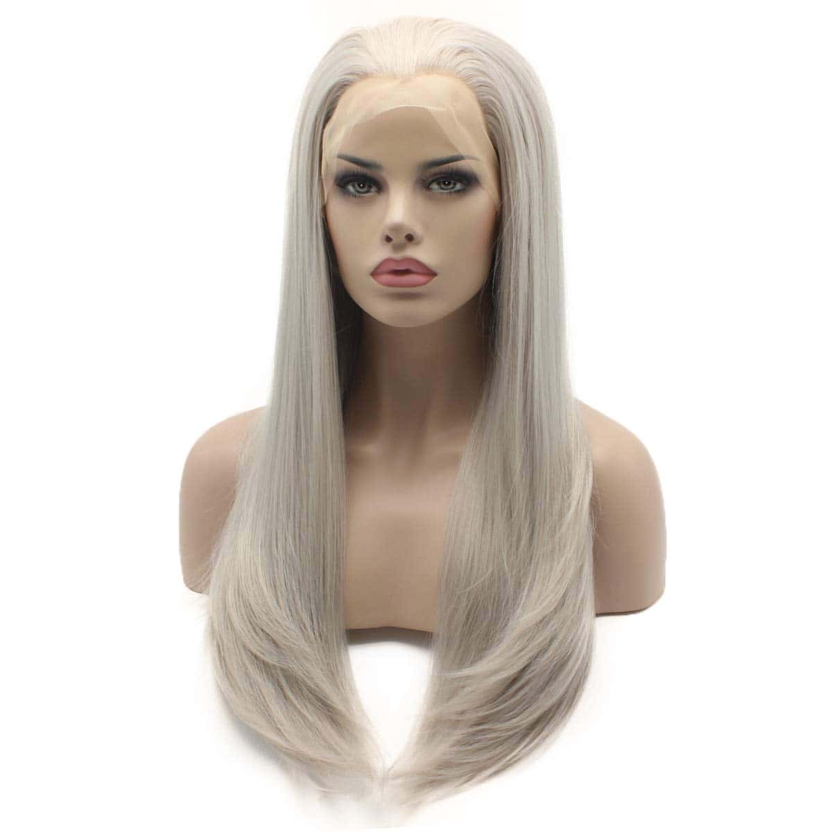 Pelucas de Encaje Frontal Sintético Gris Largo Liso de Alta