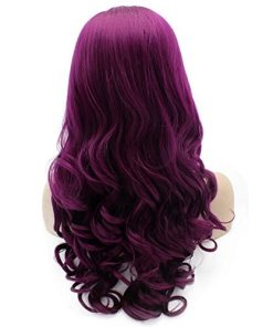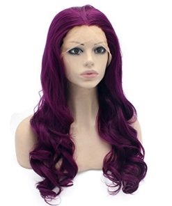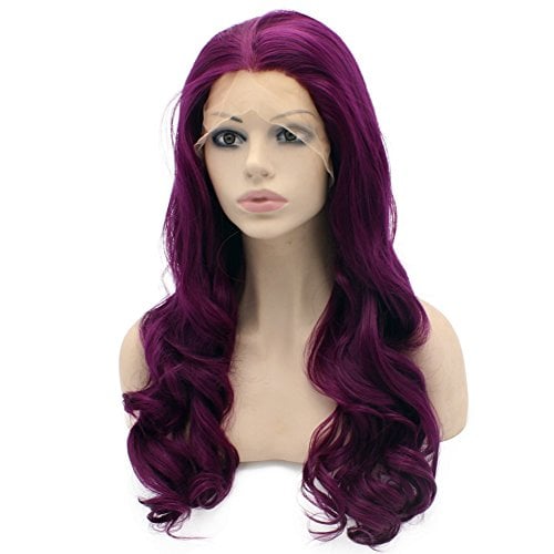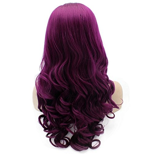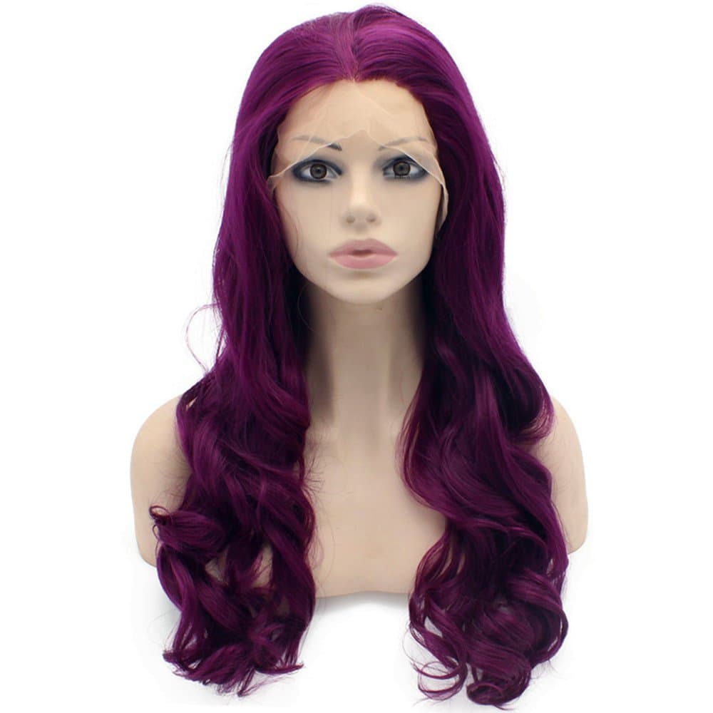 Características de la peluca de encaje frontal: Diseñada para uso diario, cómoda, transpirable, suave y duradera. En color morado intenso con ondas como se muestra en las imágenes. Tamaño promedio con correa ajustable. Largo de 24 pulgadas, textura ondulada y densidad completa. Fabricada con fibra sintética de alta calidad resistente al calor. Ideal para usar en fiestas o en el uso diario para mostrar tu belleza y confianza.