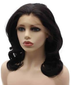 Esta es una peluca sintética de encaje frontal de longitud corta a los hombros