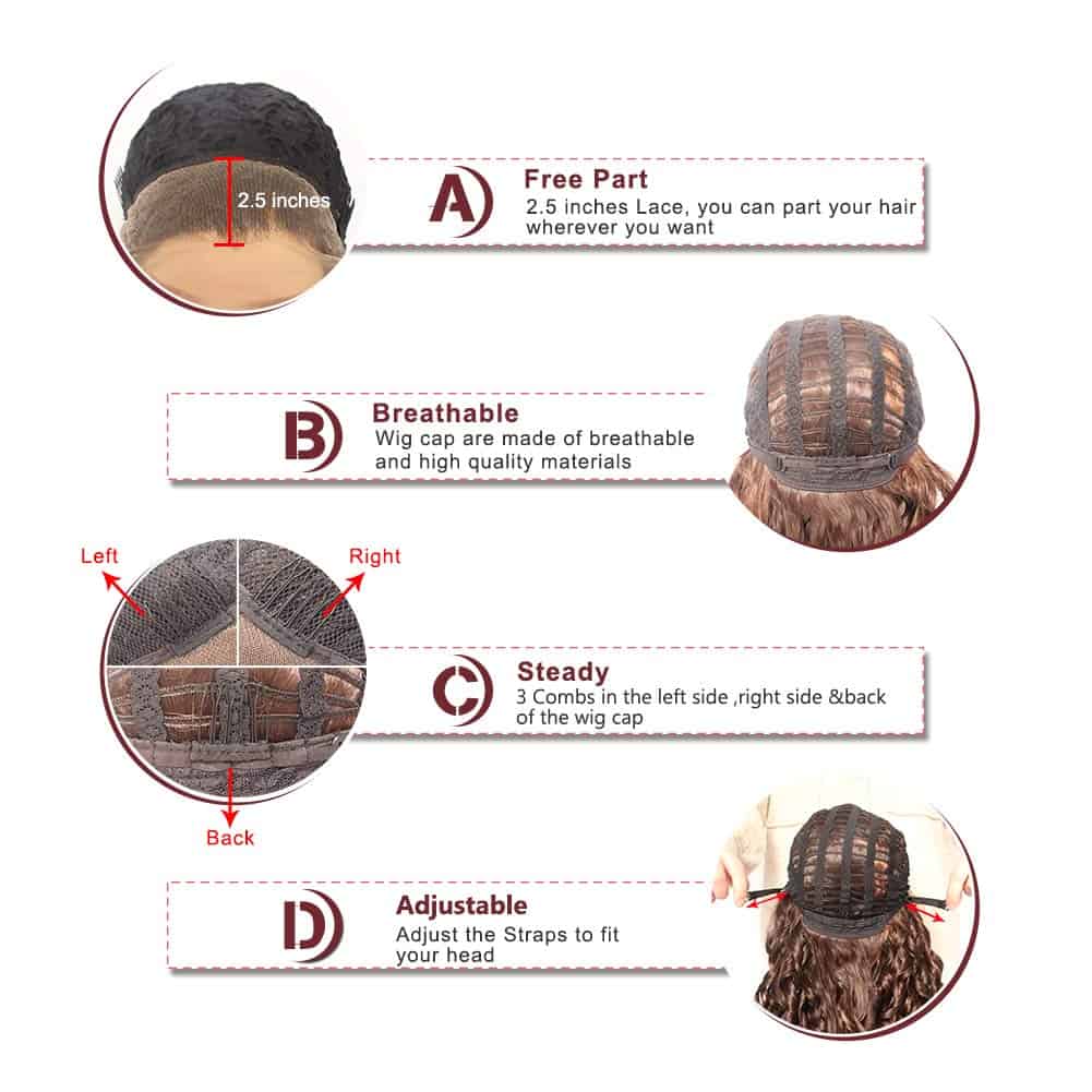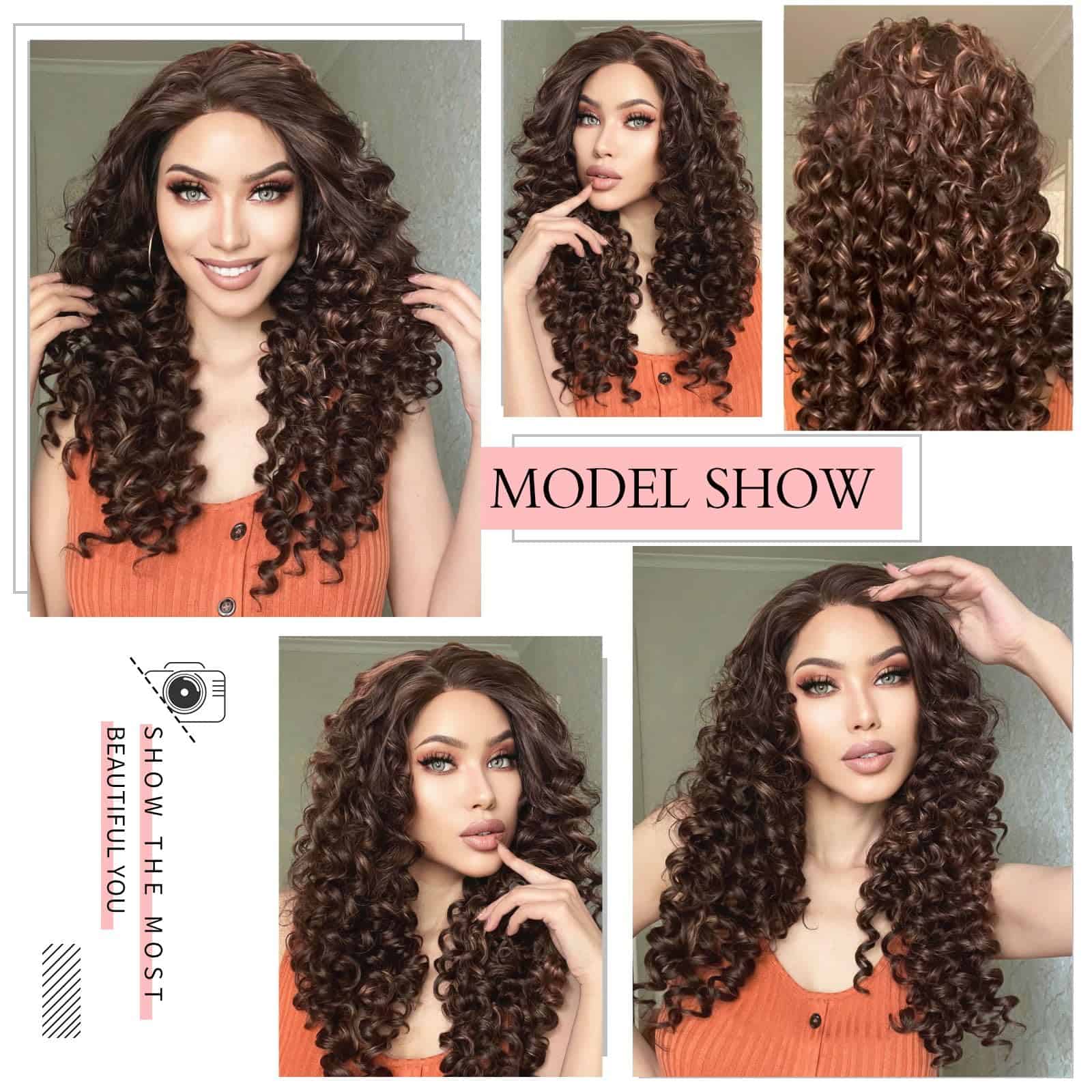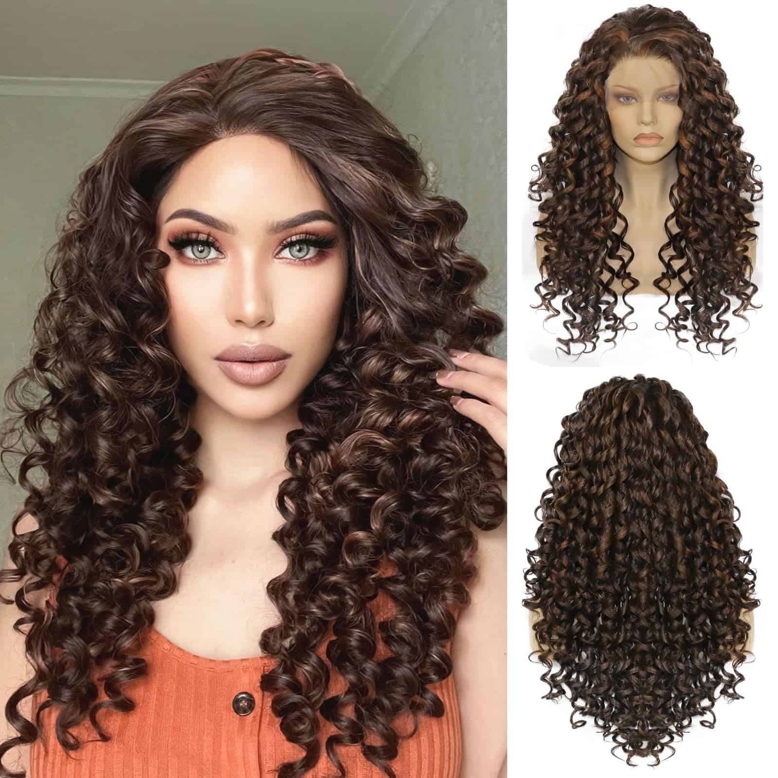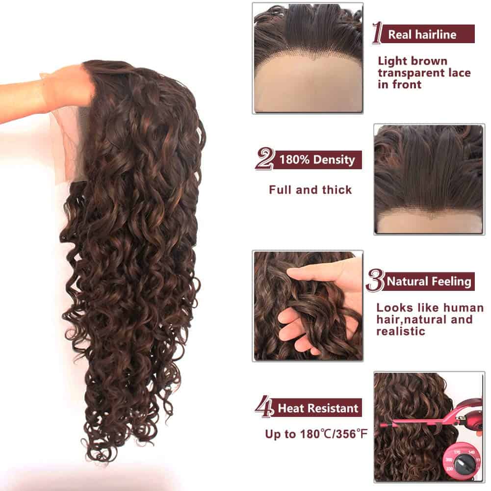 Pelucas de Encaje Marrón Oscuro de 26 Pulgadas Ebingoo con