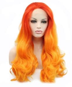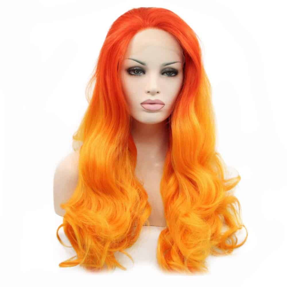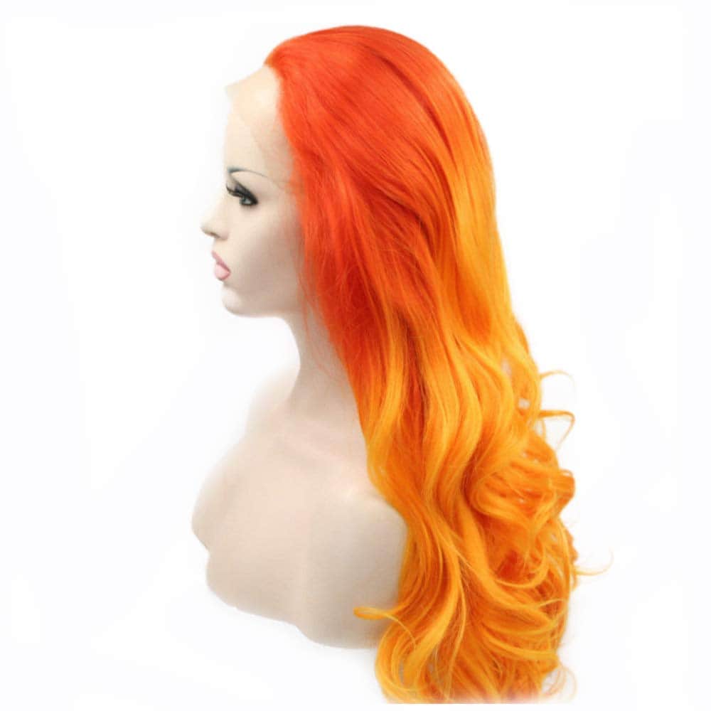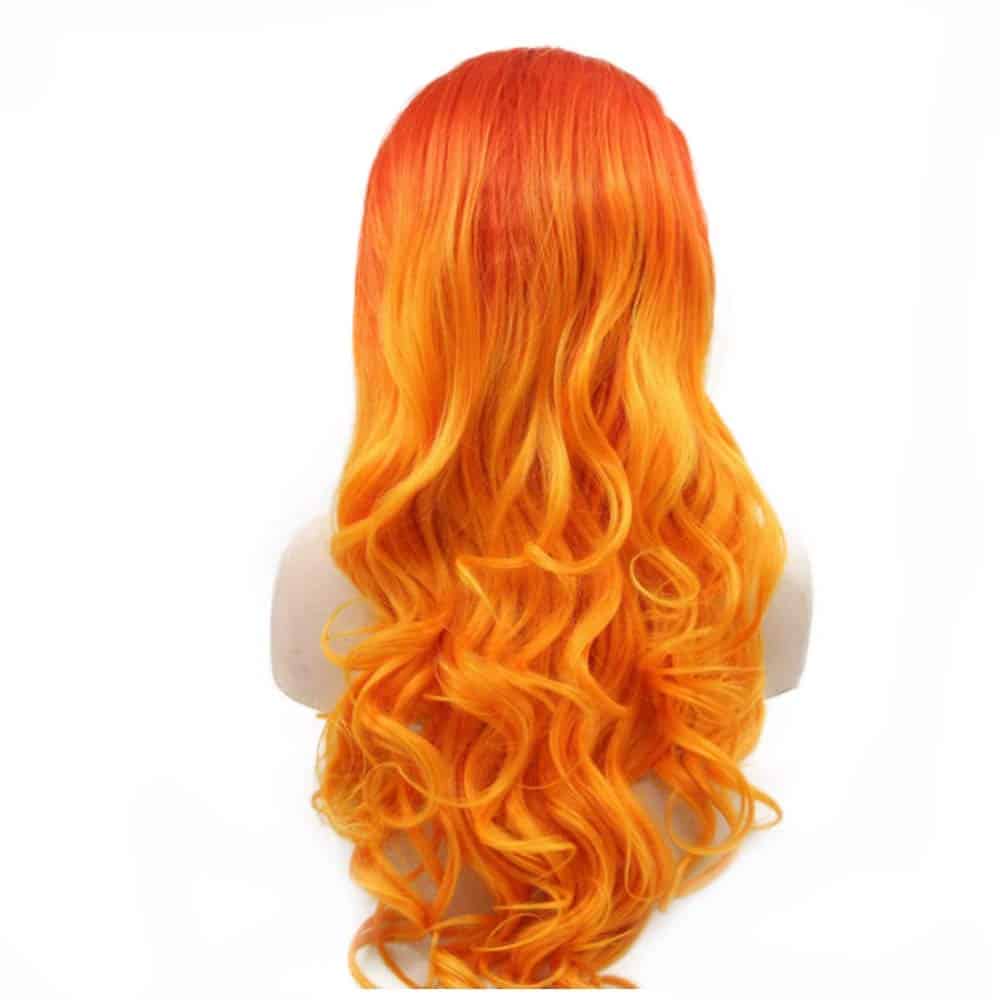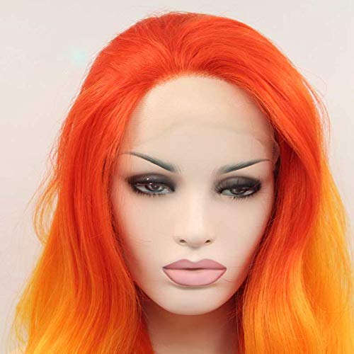 Pelucas de Cabello Sintético Ombre Naranja Rojo Pelucas Largas y Onduladas Sintéticas, Similares al Cabello Humano Real, Natural y Elegante