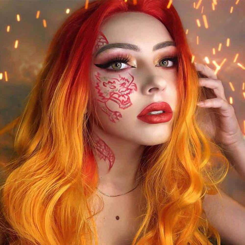 3. Color del cabello: Color naranja rojo amarillo colorido