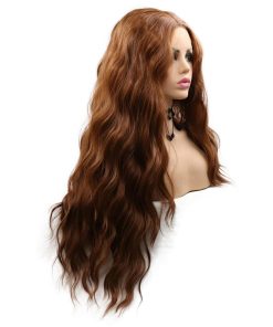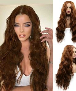 Pelucas de encaje sintético SERENEWIG 30# color marrón medio para mujeres onduladas largas Onda suelta Fibra de cabello resistente al calor Lolita Cosplay Pelucas para niñas Pelucas naturales y completas de reemplazo diario