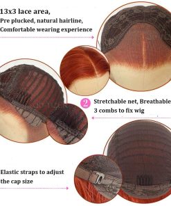 La peluca de encaje frontal, que es suave y cómoda, imita el cuero cabelludo real. Hay tres peines en una gorra de red. Los diseños elásticos de la gorra de la cabeza y la correa ajustable se adaptan a todas las personas de tamaño promedio y te dan una sensación de comodidad y seguridad. Puedes usar esta peluca para mejorar tu belleza en pocos minutos. Características de las pelucas: Son de alta calidad, modernas y cómodas. Fácil de poner, fácil de cuidar, fácil de lavar.