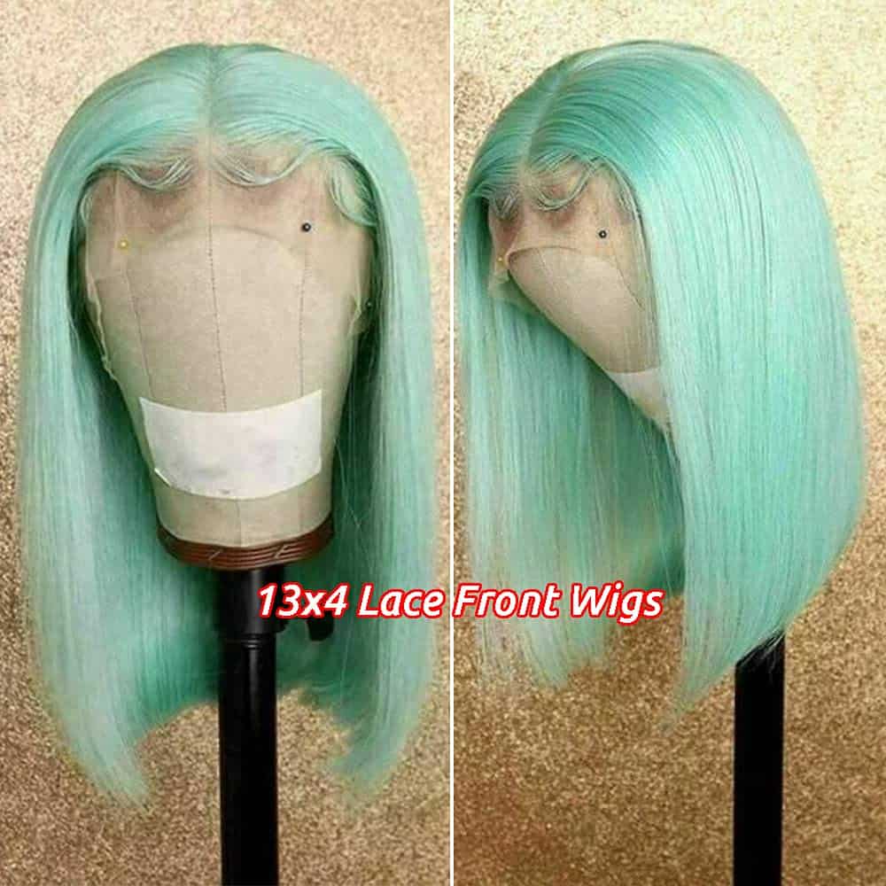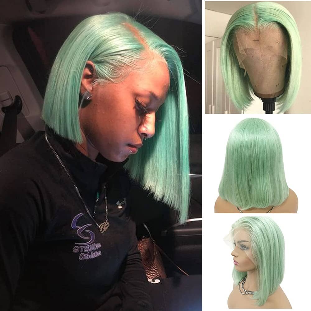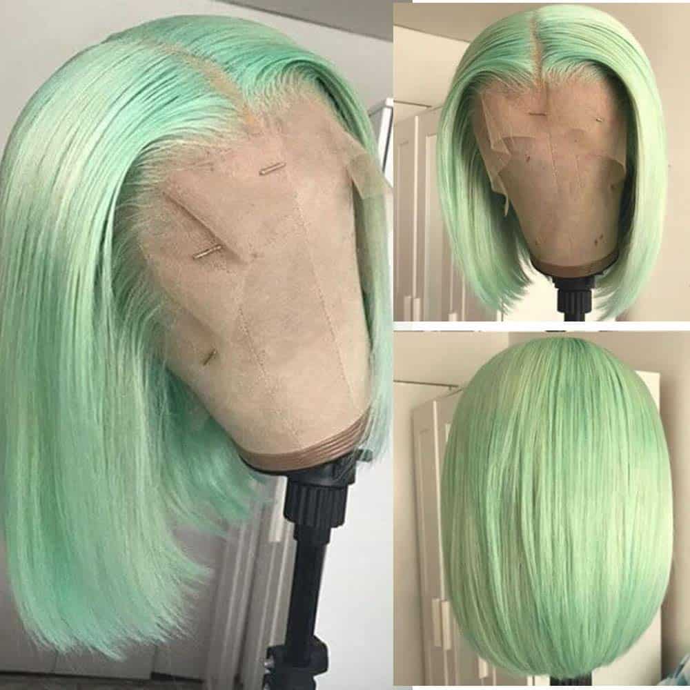 Pelucas de Pelo Humano Corto Bob en Color Verde Menta 10″