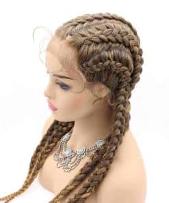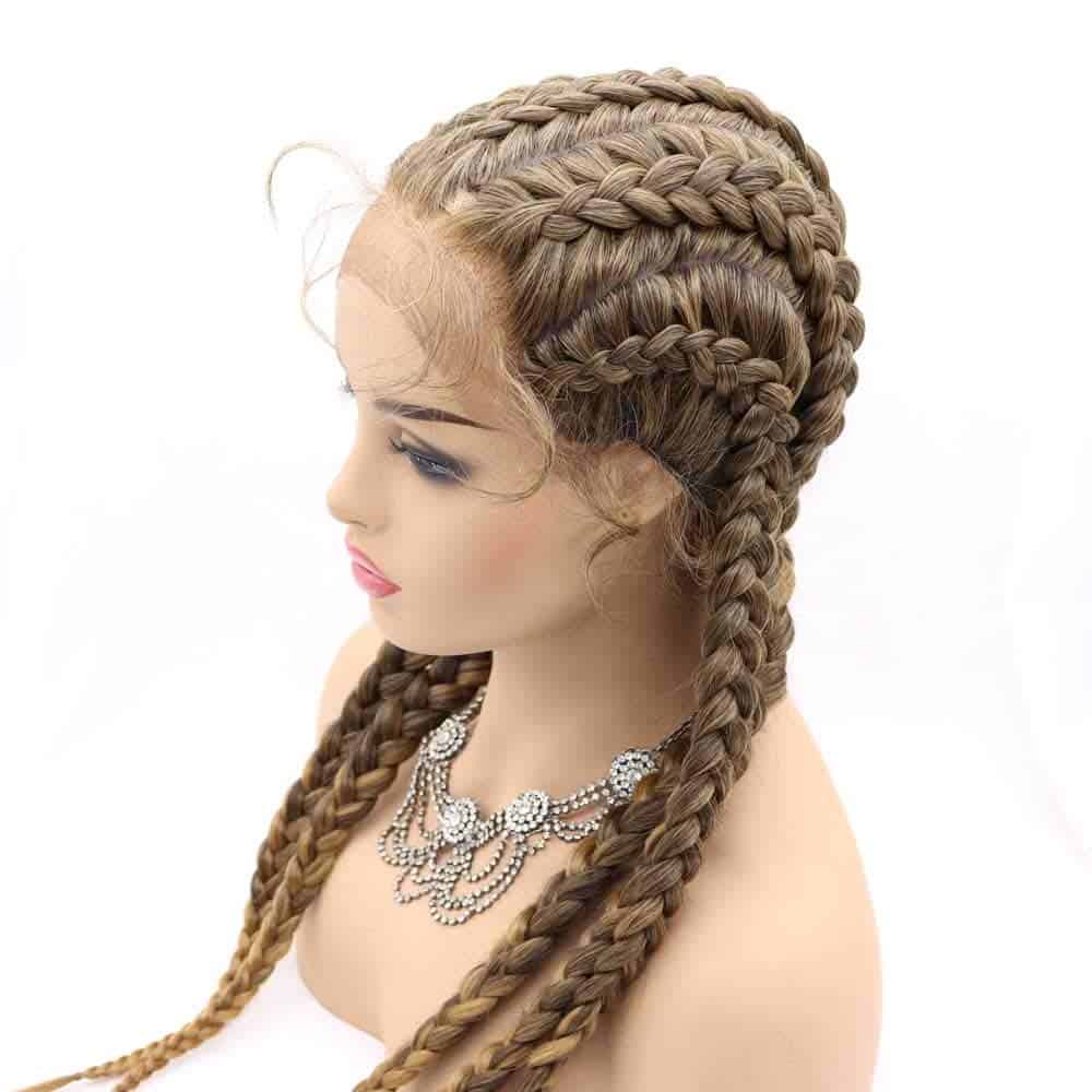 Una peluca de encaje frontal sintética premium + 2 gorros de peluca gratis