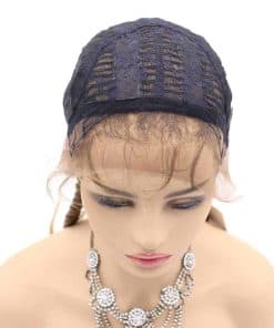 1. Recoge tu cabello y ponte un gorro de peluca, utiliza un gorro de peluca en cualquier longitud de cabello para mantenerlo todo en su sitio y garantizar un ajuste suave.