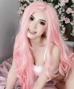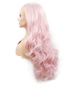 Paquete Incluido: 1x Peluca Larga Ondulada Rosa Pastel + 2 piezas x Gorros de Peluca de Nylon Elástica Estirables Mejores