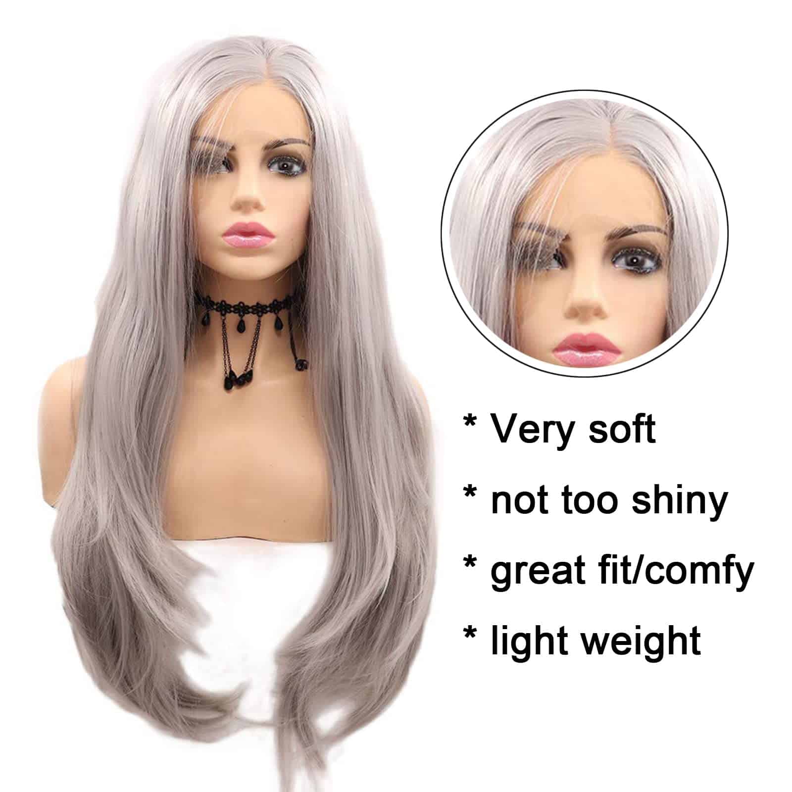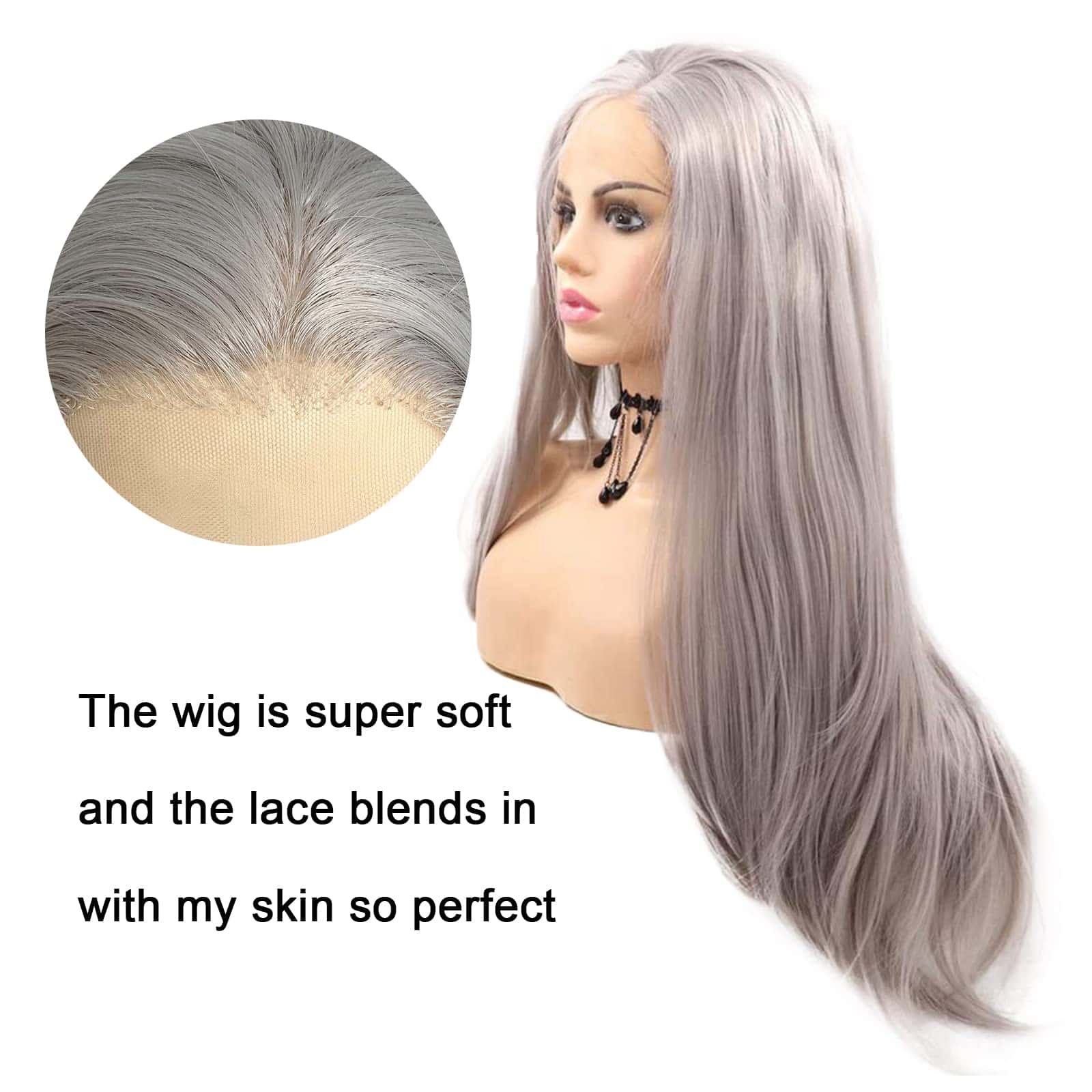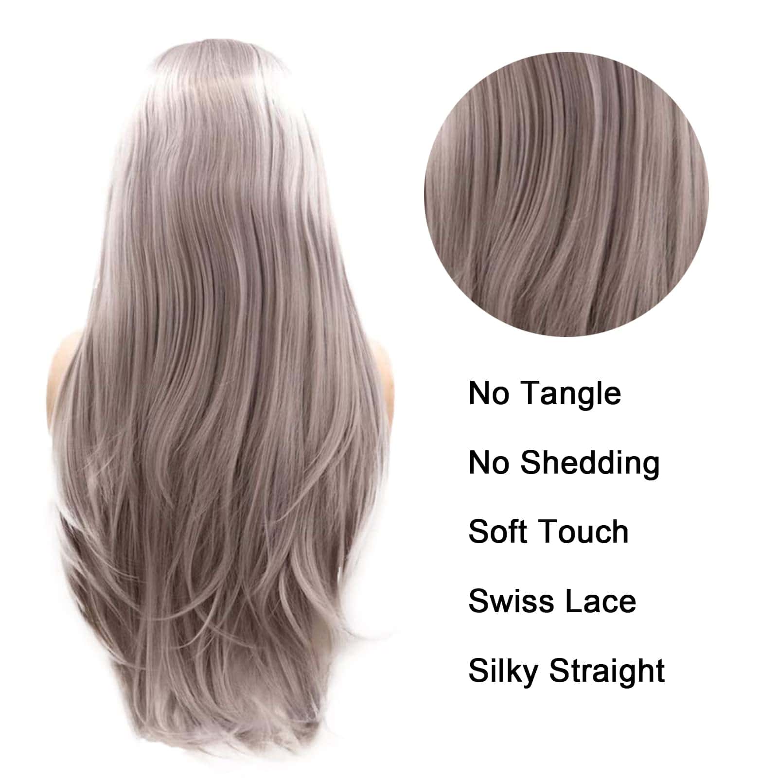 Peluca de Pelo Lacio Gris Plateado de Alta Resistencia al Calor para proporcionar el aspecto más natural y suave. Puedes darle el estilo que desees a esta peluca, diseño elegante adecuado para Uso Diario, Halloween, Conciertos, Fiestas Temáticas, Bodas, Navidad, Fiestas de Disfraces, etc. y te brinda más confianza y encanto. El paquete incluye 1 Peluca Larga de Pelo Liso Gris con Encaje Frontal + 2 gorros de redecilla para el cabello.