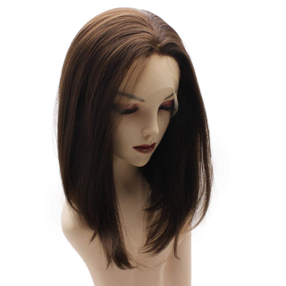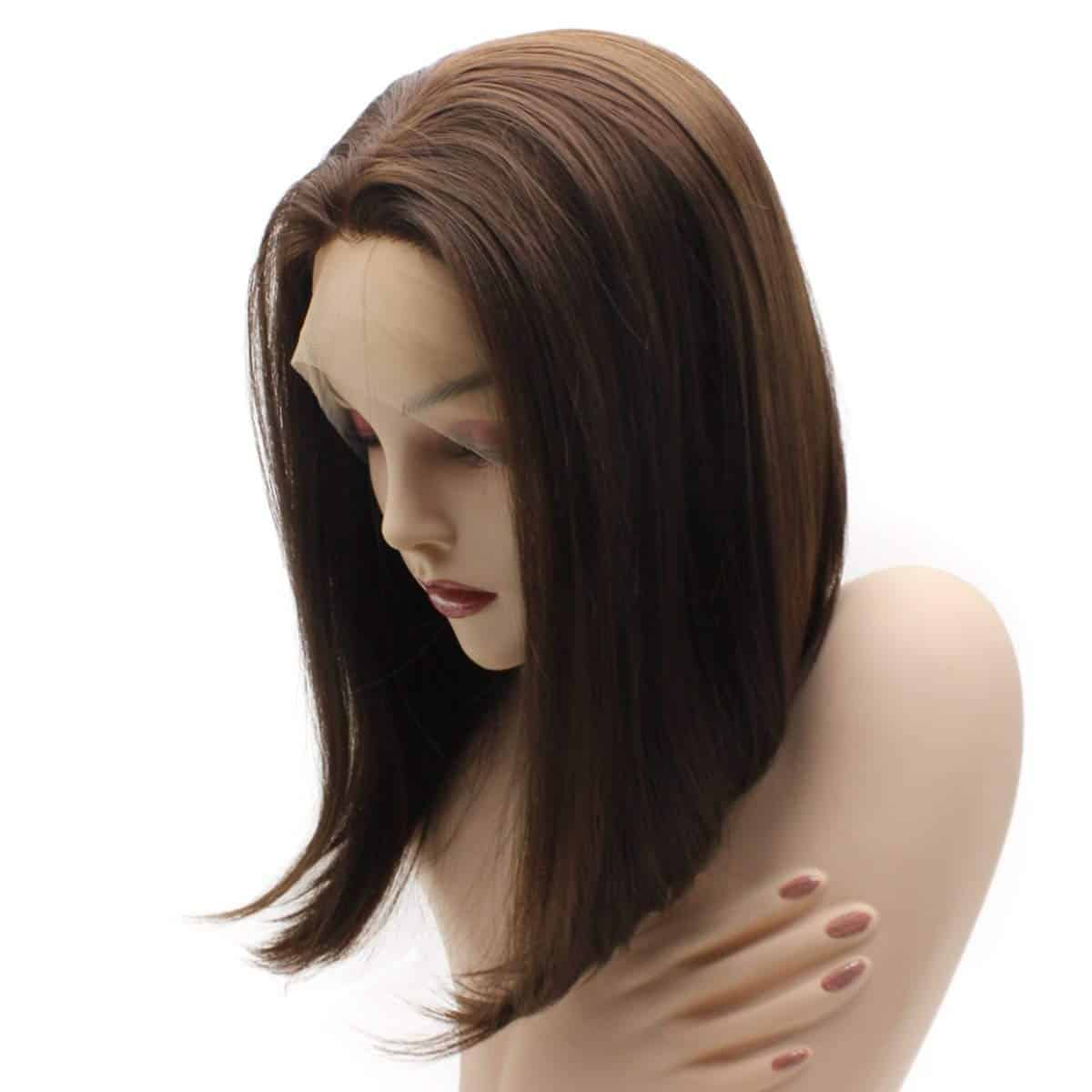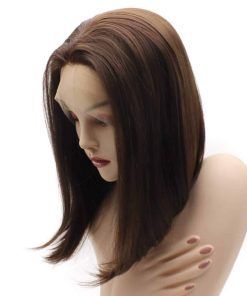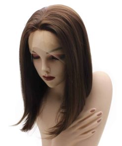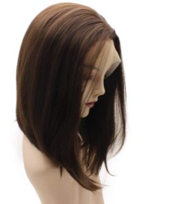 Pelucas Iwona Short Bob Straight Brown Half Hand Tied Lace