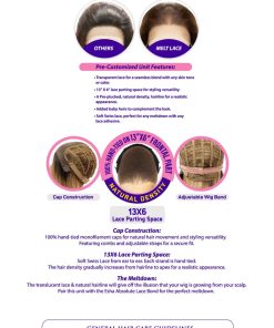 Pelucas Frontales Janet Collection Lace Melt Hand-Tied 13X6 Kendall Color Mostrado: OET1B/VELVET WINE, BUTLER SCOTCH «Los colores de la imagen y el producto real pueden variar ligeramente según la resolución de la pantalla.» Construcción de la Gorra Gorras Monofilamento 100% hechas a mano para un movimiento natural del cabello y versatilidad de peinado. Con peines y correas ajustables para un ajuste seguro. Espacio de Partición de Encaje 13X6 de oreja a oreja. Cada hebra está atada a mano. La densidad del cabello aumenta gradualmente desde la línea del cabello hasta el ápice para una apariencia realista. La Fusión Combina esta unidad con el Adhesivo de Encaje Esha Absolute para la fusión perfecta. Características de la Unidad Pre-Personalizada Encaje transparente para una fusión sin costuras con cualquier tono de piel o color. Espacio de partición de encaje 13X6 para versatilidad de peinado. Una línea de cabello pre-desplumada, de densidad natural, para una apariencia realista. Pelitos bebé adicionales para complementar el look. Encaje suizo suave, perfecto para cualquier fusión con cualquier adhesivo de encaje. Pautas Generales de Cuidado del Cabello El rizo es más apretado a medida que la temperatura aumenta. Nuestro estilista recomienda 380F como ideal para rizar y alisar. PRECAUCIÓN: Por favor, no exceda los 400F. EL CABELLO PUEDE ENREDARSE SI NO SE SIGUEN LAS INSTRUCCIONES DE CUIDADO GENERALES ADECUADAMENTE Lave el cabello pasando los dedos desde la raíz (cuero cabelludo) hasta las puntas. Evite enredarse mientras está mojado, no utilice movimiento circular. Acondicione el cabello y peine mientras el acondicionador está puesto. Enjuague a fondo, asegurándose de que no quede acondicionador. El acondicionador restante puede causar enredos. PRECAUCIÓN No use productos químicos rizadores o alisadores. No use aerosol, brillo, néctar, o productos similares. Pueden causar enredos. Por la noche, use una cobertura de satén para proteger el cabello.