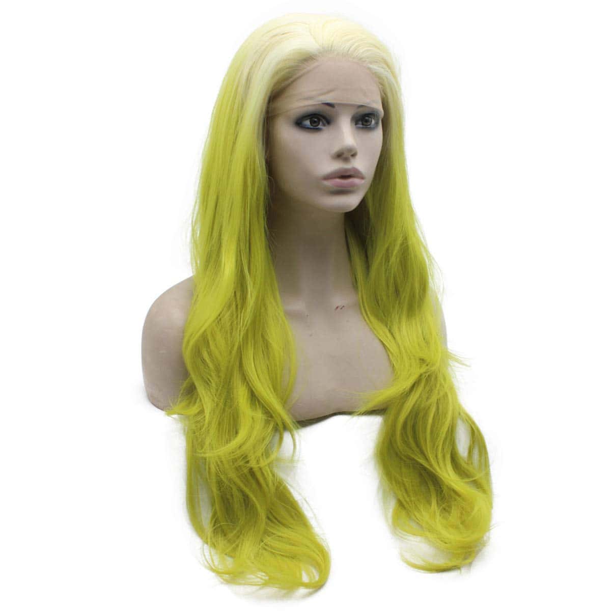 Pelucas largas onduladas de ombre verde amarillo rubio