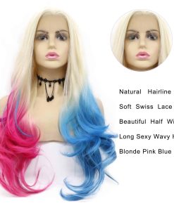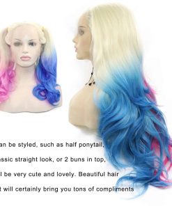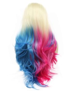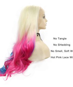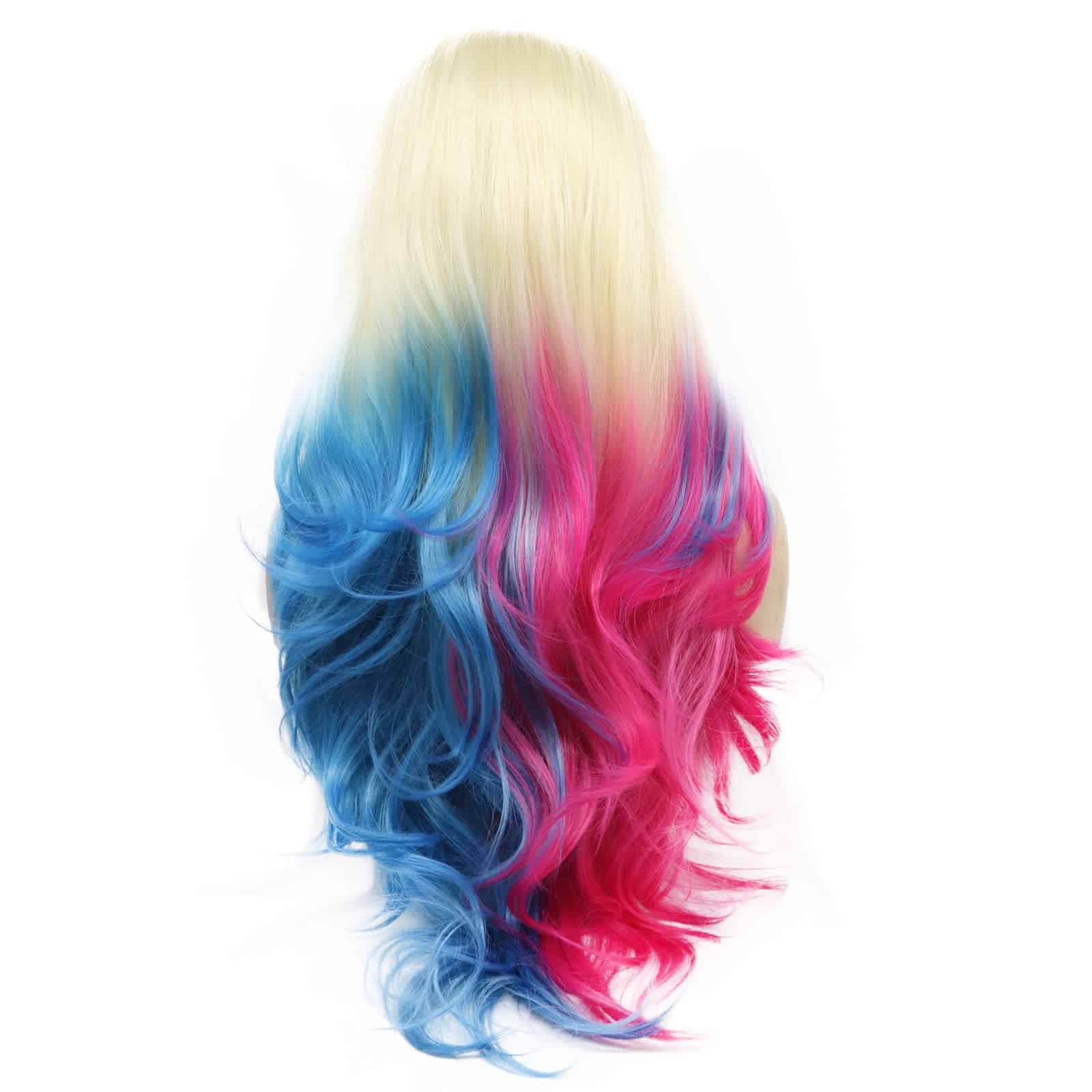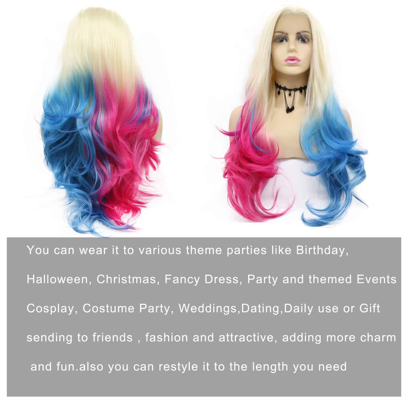 1. PELUCA DE ENCAJE FRONTAL DE ARCOÍRIS SUPER REALISTA peluca larga rosa bebé cosplay de 24 pulgadas de largo con encaje frontal, rubio degradado medio rosa azul (el color como en la imagen), brillo natural y tacto sedoso, se ve tan realista. Pelucas de encaje frontal coloridas, esta fibra sintética de sirena azul verde es resistente al calor, puede calentarse hasta 320 F, resiliente y suave, se siente como cabello humano saludable. La técnica de modelado de múltiples capas hace que la peluca sea estéreo y vívida.