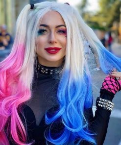 Pelucas largas rosadas y azules para mujeres rizadas rubias