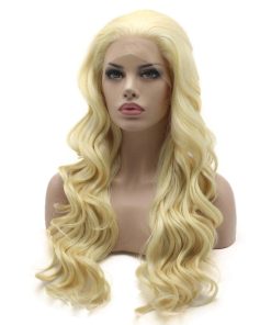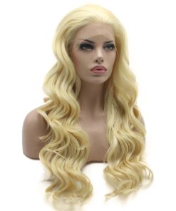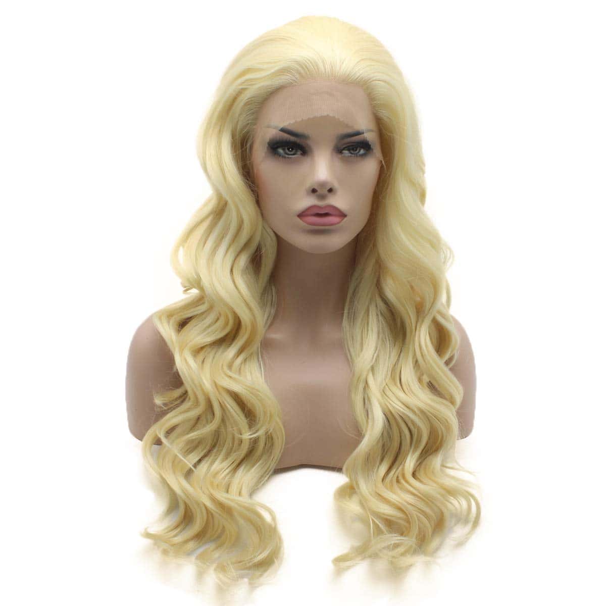 1. Peluca ondulada y larga de 24 pulgadas en rubia clara con frontal de encaje.