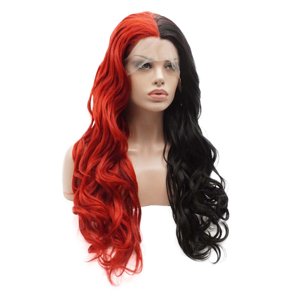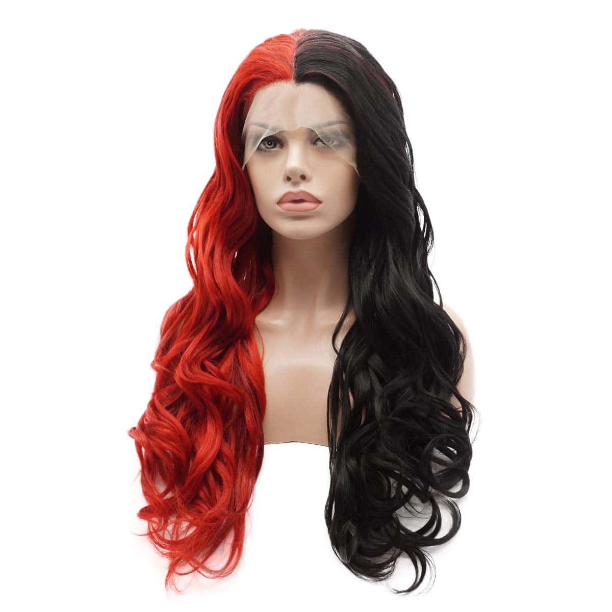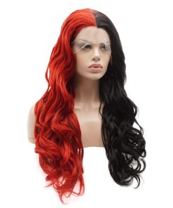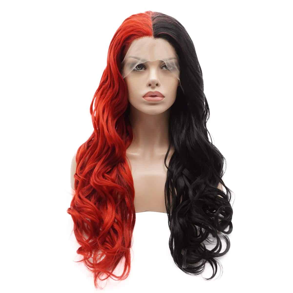 Pelucas largas y onduladas de moda Lushy, mitad negro mitad