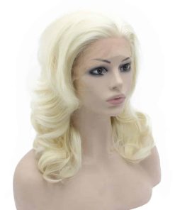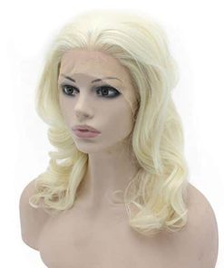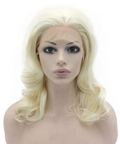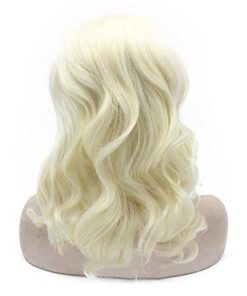 Características de la peluca de encaje frontal: Ocasión: Utilizada para uso diario, natural; cómoda, transpirable, suave; duradera, para uso en disfraces, cosplay también. Encaje: encaje frontal medio atado a mano con línea de cabello natural, encaje transparente adecuado para diferentes tonos de piel. Color: peluca de encaje rubio más claro y ondulado como se muestra en las fotos. Tamaño de gorra: tamaño promedio con correa ajustable en stock. Longitud: media larga, misma longitud que en las fotos, textura ondulada. Densidad: 150% de densidad completa de peluca. Material: Fibra sintética de alta calidad resistente al calor Use esta peluca de cabello natural en fiestas o para uso diario y muestre su belleza y confianza.