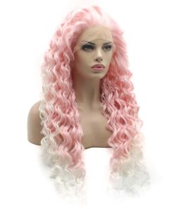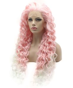 Pelucas Lushy Long 26 pulgadas Rizado Rosa Raíz Blanca