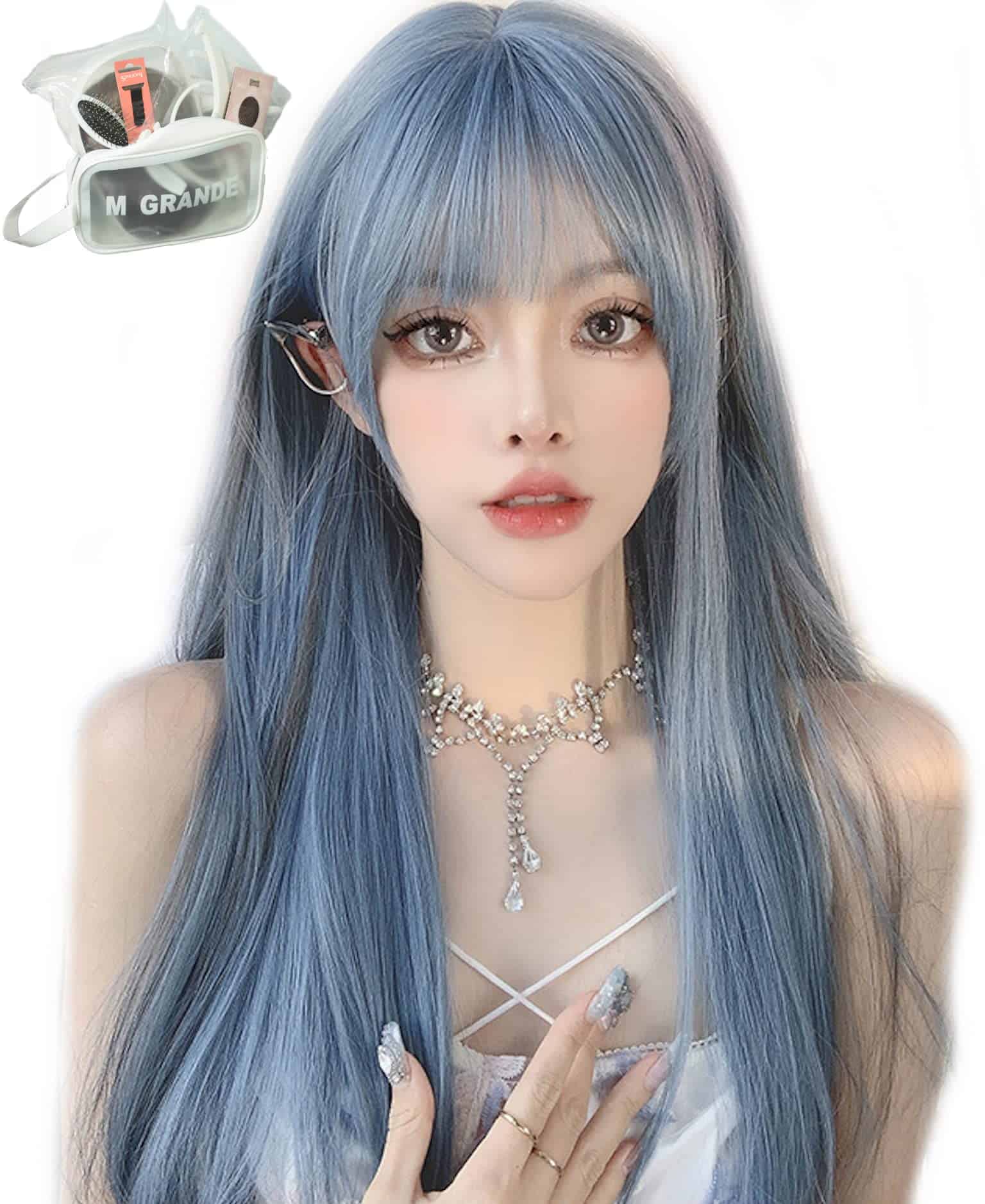 ¡Consigue fácilmente un cambio de imagen con estas pelucas premium de la línea MGRANDE! Cada conjunto de 6 piezas está producido por un estilista experto y está diseñado para realzar los rasgos faciales y proporcionar un efecto semi-largo. El color azul único con mechones marrón DY47A le dará un aspecto original y elegante. ¡Luce tu mejor versión con estas pelucas de alta calidad!
