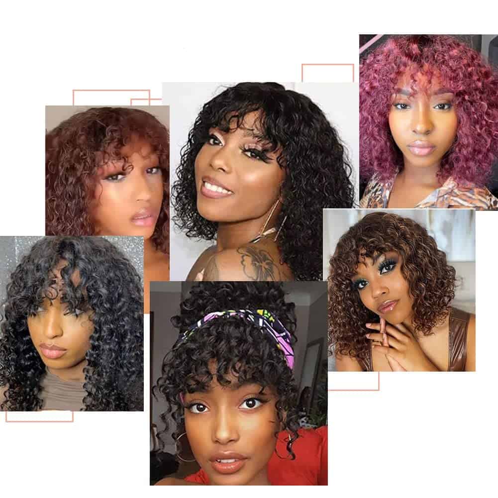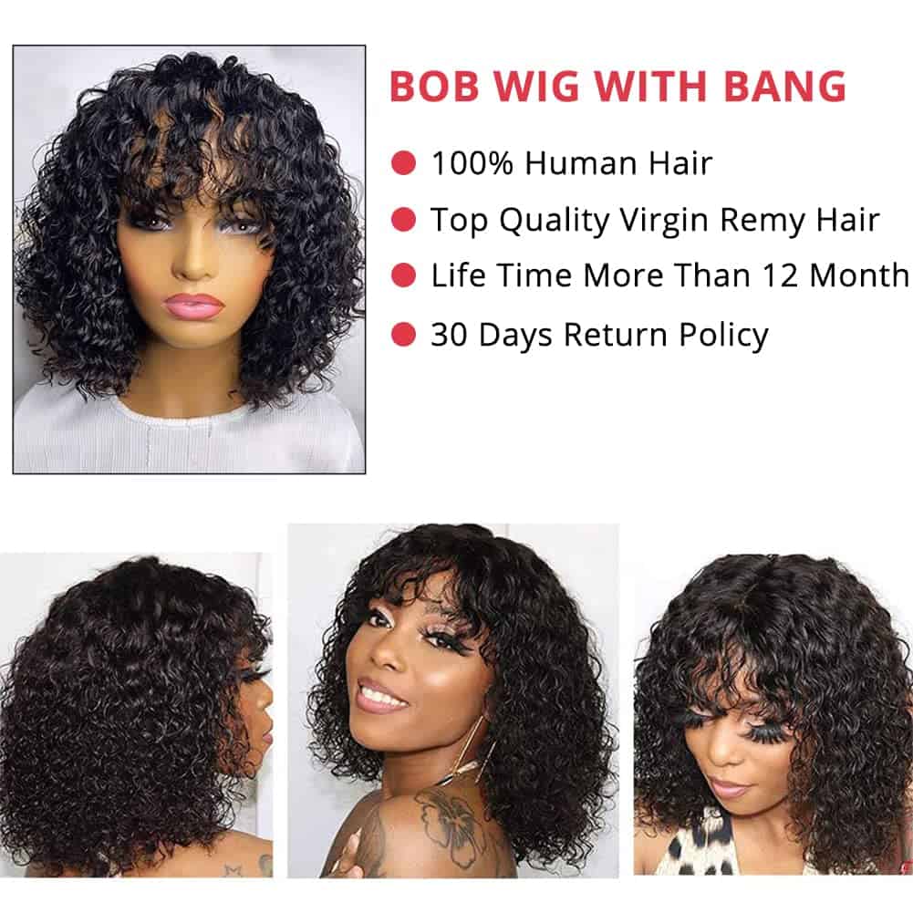 1. Modelo mejorado: Pelucas rizadas cortas con flequillo son 100% cabello humano sin procesar brasileño, recolectado de donantes jóvenes. El material avanzado hace que el cabello sea más esponjoso y natural, el rizo es más duradero y el tiempo de uso es más prolongado.