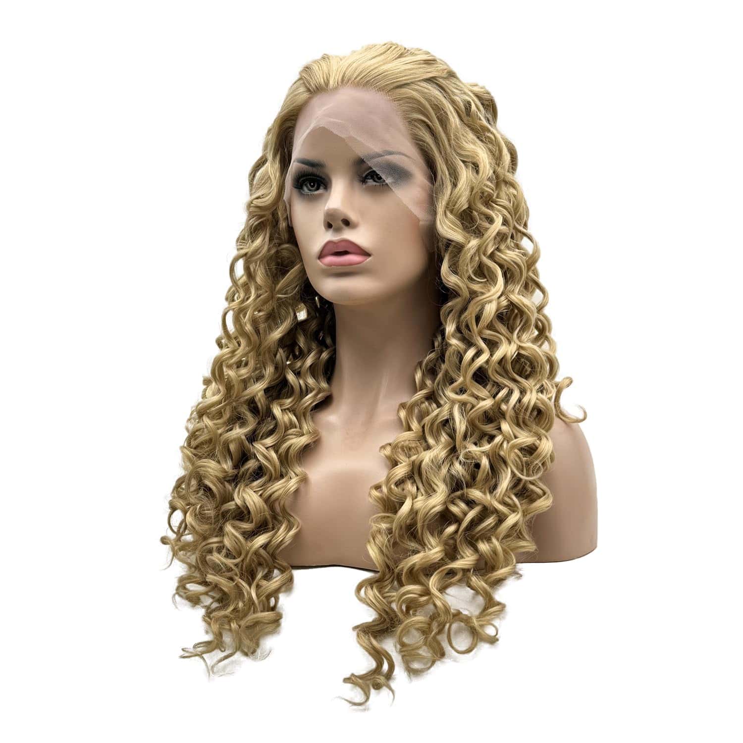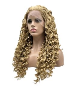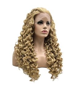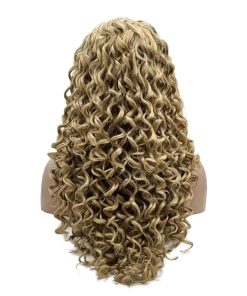 1. Peluca rizada de 26 pulgadas con tres tonos rubios en encaje frontal. 2. Densidad completa, gruesa y pesada. 3. Mitad de encaje frontal hecho a mano, estilo libre, puedes partirlo donde quieras. 4. Fibra de alta calidad resistente al calor, puedes utilizar calor para restyle. 5. Sin enredos, no se cae, suave y sedoso.