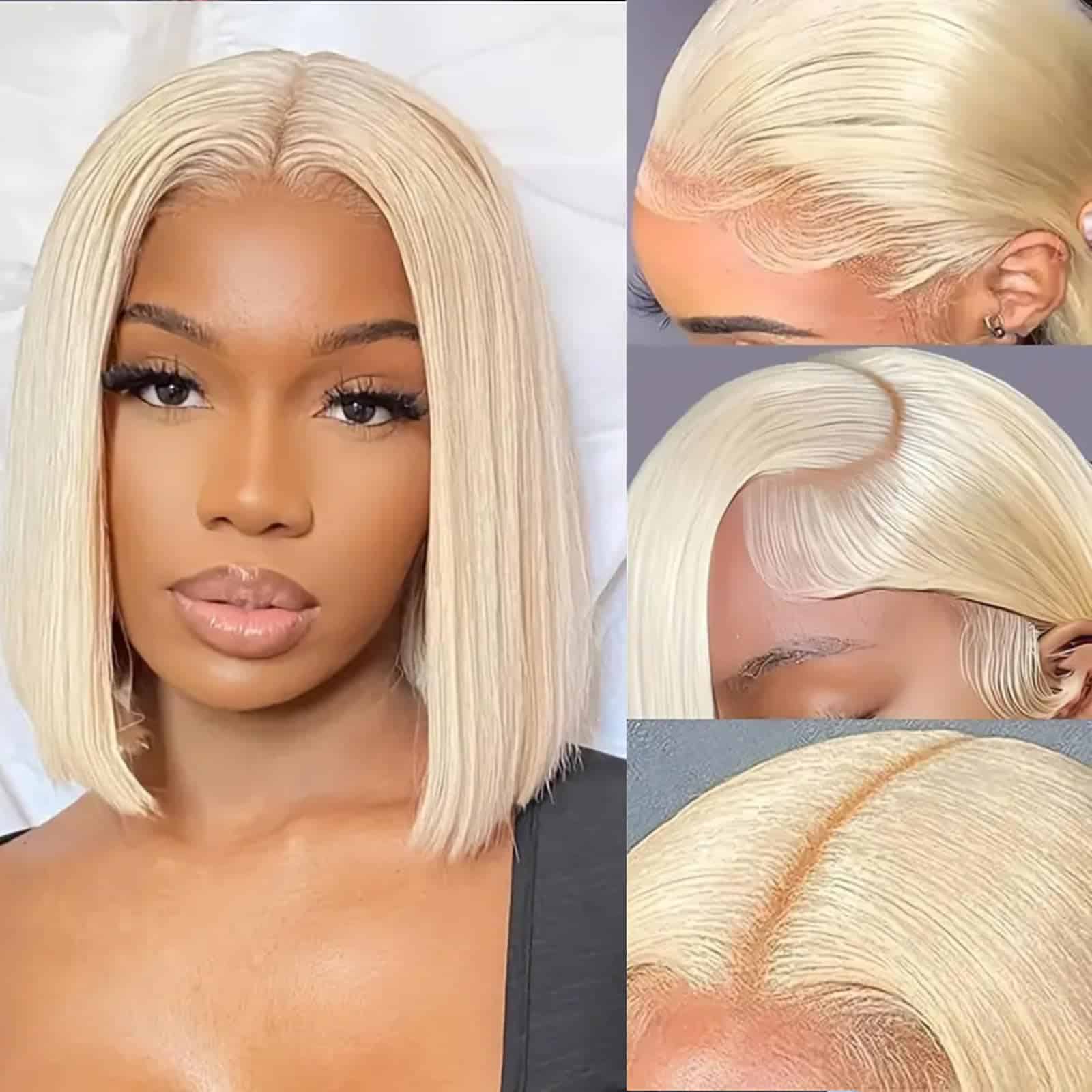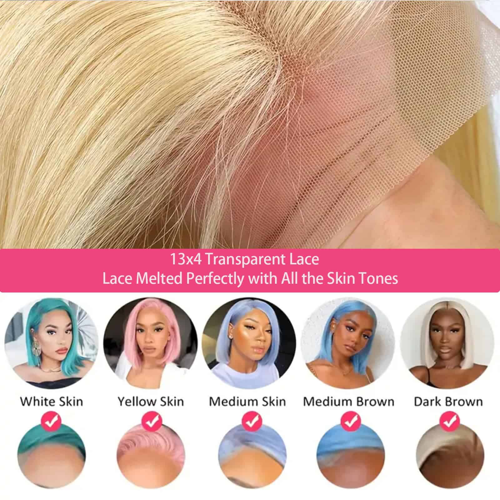 5. Ventaja del Cabello Rubia 613: Nuevo estilo de Color más Trendy, Usar esta peluca bob rubia te dará el estilo más elegante, te hará más encantadora, Esta peluca se puede teñir y Restilar, Puede ser usada diariamente en Fiestas, Halloween, Navidad, Boda y otras Celebraciones. Peluca Bob de Cabello Humano Rubia 613 de Encaje Frontal.