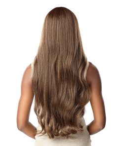 Pelucas de encaje sintético Sensationnel Butta con parte frontal de encaje de 5 pulgadas de profundidad y ancha extra con una línea de cabello natural y preplumada con babyhair que se funde con el tono de piel. Cabello sintético resistente al calor alto y área frontal de encaje HD hecha a mano. Compatible con cabezas de tamaño pequeño a grande debido a la amplia área de parte de 5 pulgadas de profundidad con encaje HD transparente de oreja a oreja. Opciones de estilo y colores: peluca sin pegamento fácil de hacerlo tú mismo con opciones de estilo de cabello corto o largo y colores básicos y especiales de reflejos Balayage, Flamboyage y Moneypiece que se mezclan con la mayoría de los tonos de piel.