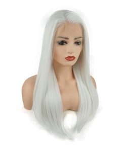 Pelucas Sintéticas Blancas de Encaje Frontal Largo Recto 24