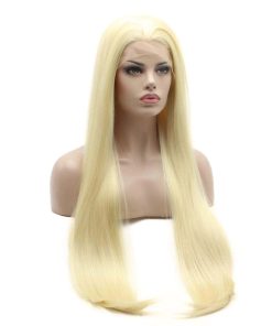 Pelucas Sintéticas de Encaje Frontal Liso Extra Largo Rubio