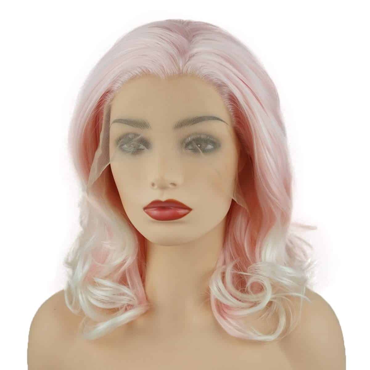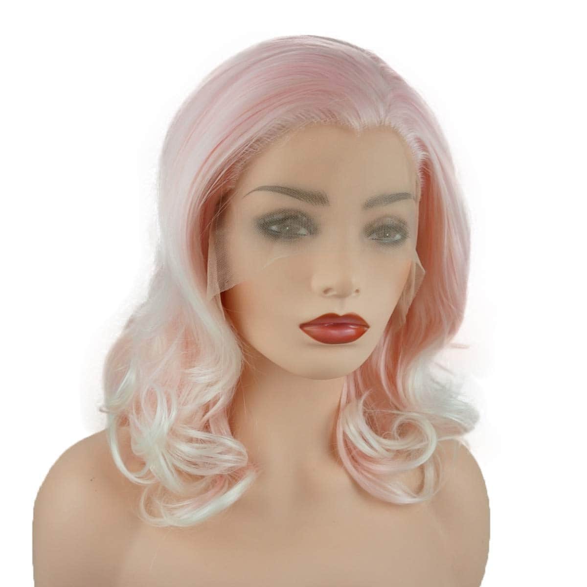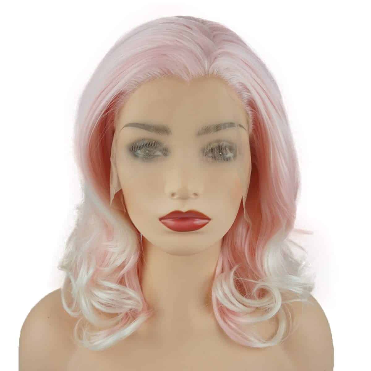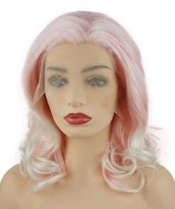 Pelucas Sintéticas de Encaje Frontal Meiyite Ombre Rosa y