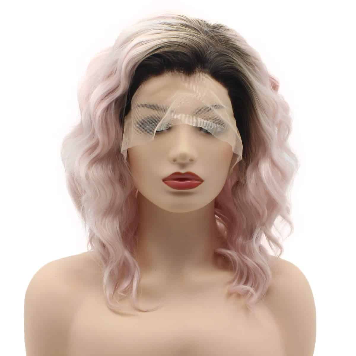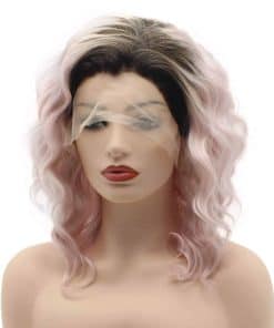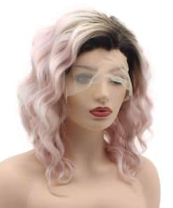 Pelucas Sintéticas de Encaje Frontal Ombre Rosa Raíces