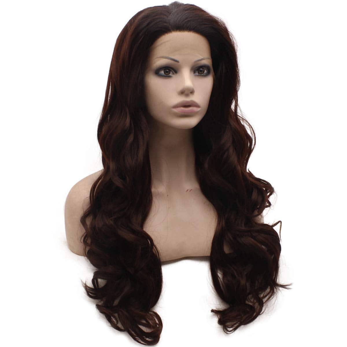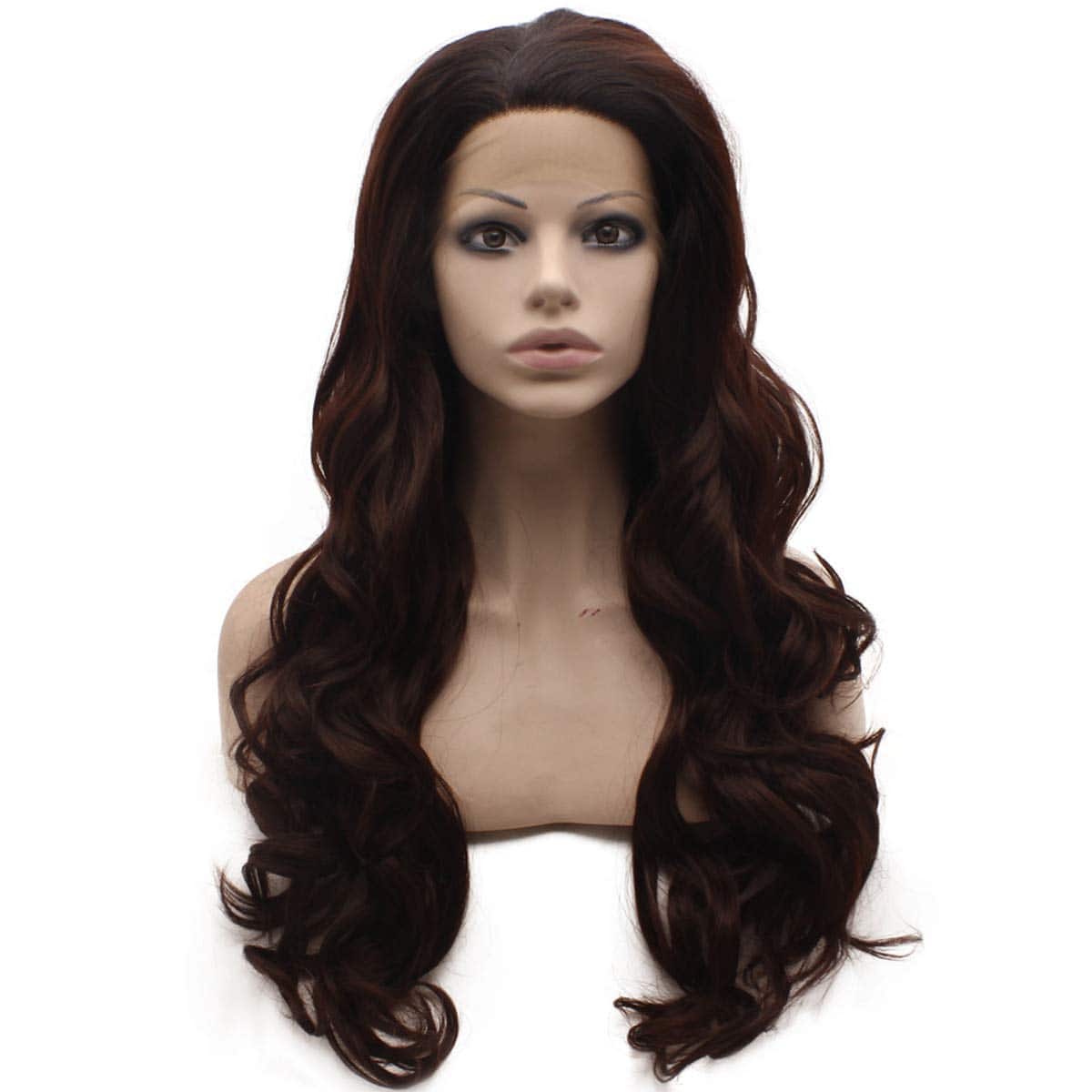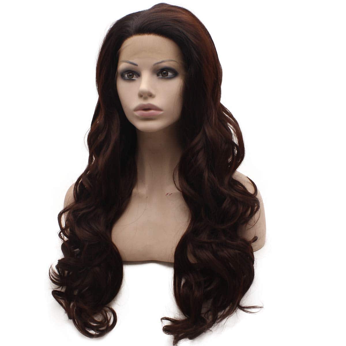 Las pelucas de encaje frontal cuentan con una línea de cabello natural hecha a mano, encaje transparente adecuado para diferentes tonos de piel. Color degradado de auburn oscuro para un aspecto elegante. Tamaño promedio con correa ajustable. Longitud larga y textura ondulada. Densidad completa y material de fibra sintética resistente al calor de alta calidad. Perfecto para uso diario y eventos especiales para lucir hermosa y segura de ti misma.