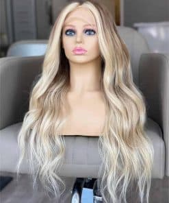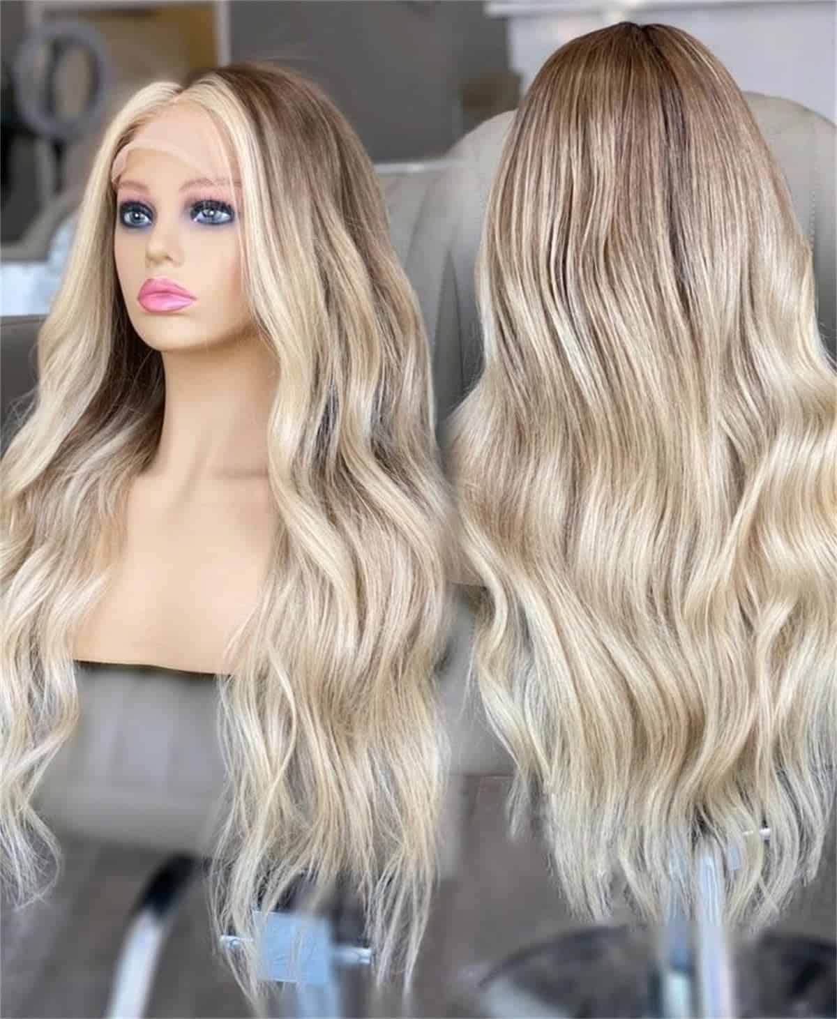 Pelucas Sintéticas Ombre de Encaje Frontal Largo y Ondulado