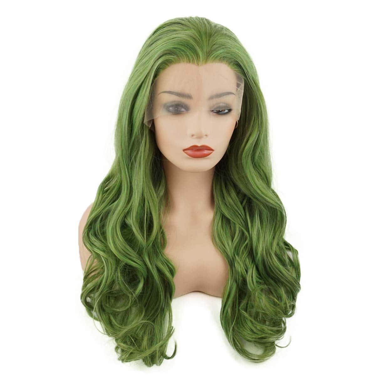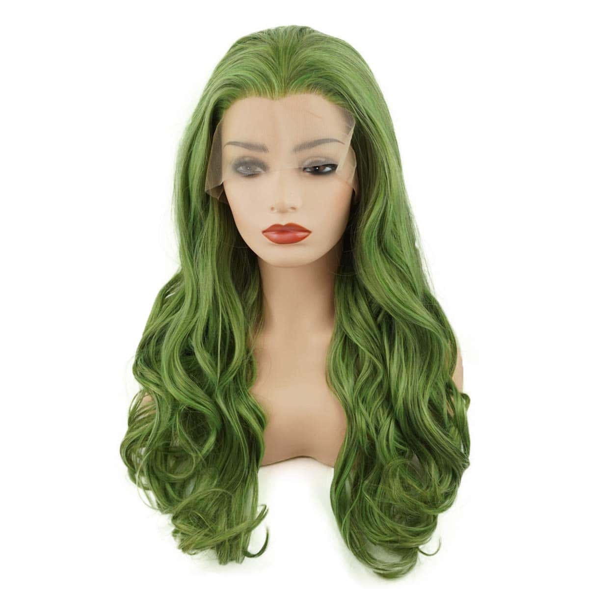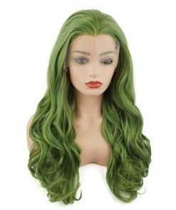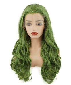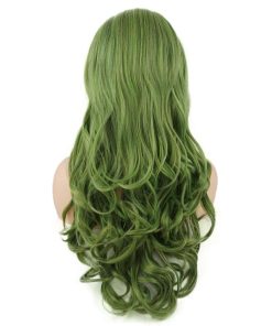 Pelucas sintéticas verdes mezcladas de pelo ondulado largo