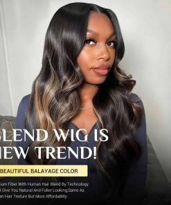 3.Material de la Peluca Rubia 1B/27 Destacados: peluca de fibra premium con mezcla de cabello humano, artesanía profesional, al tacto como el cabello humano al 100%, no se enreda, no se cae, puede mantener muy bien el estilo ondulado del cuerpo.Muy suave, sedoso suave, cómodo para la piel, natural, a la moda, te hace más encantadora.