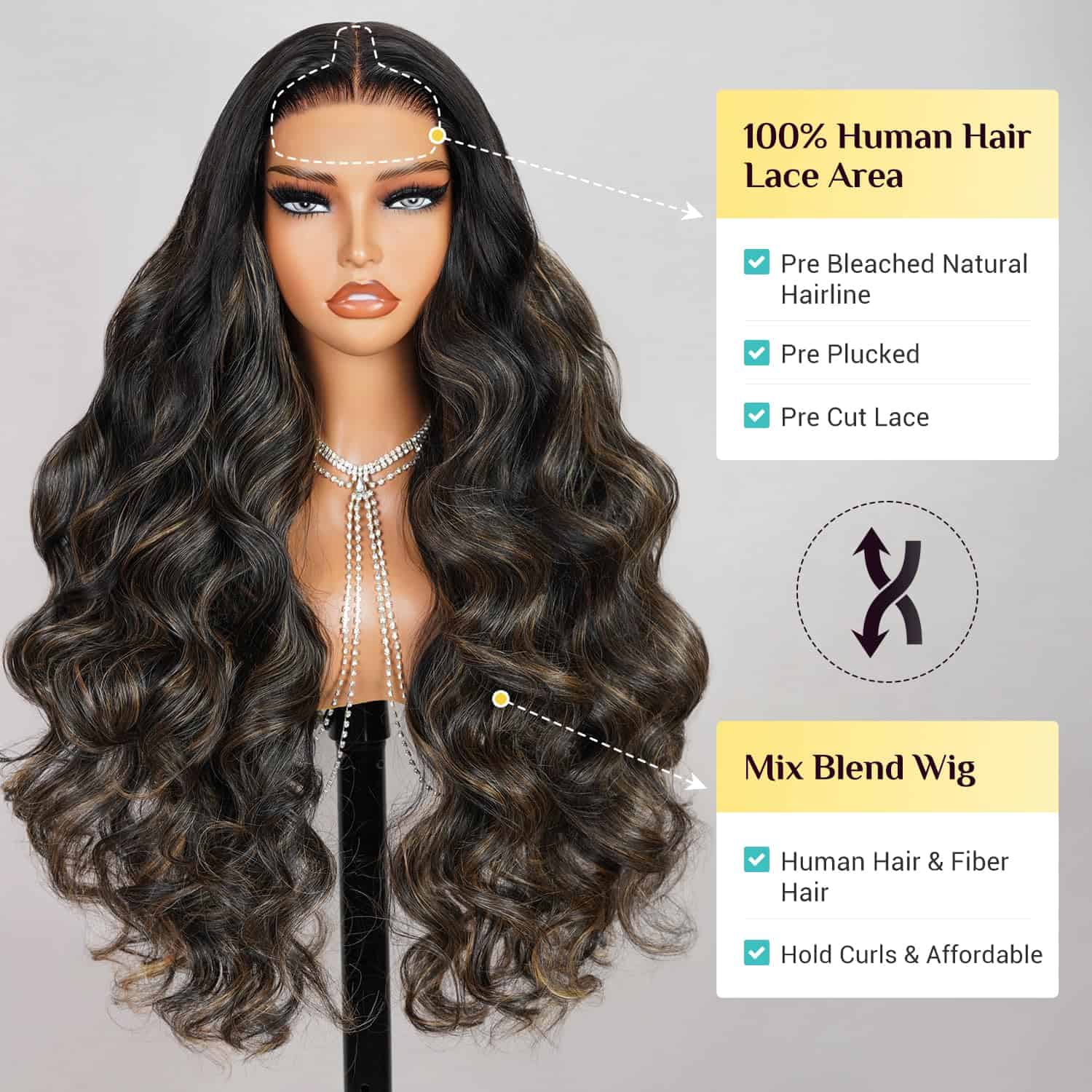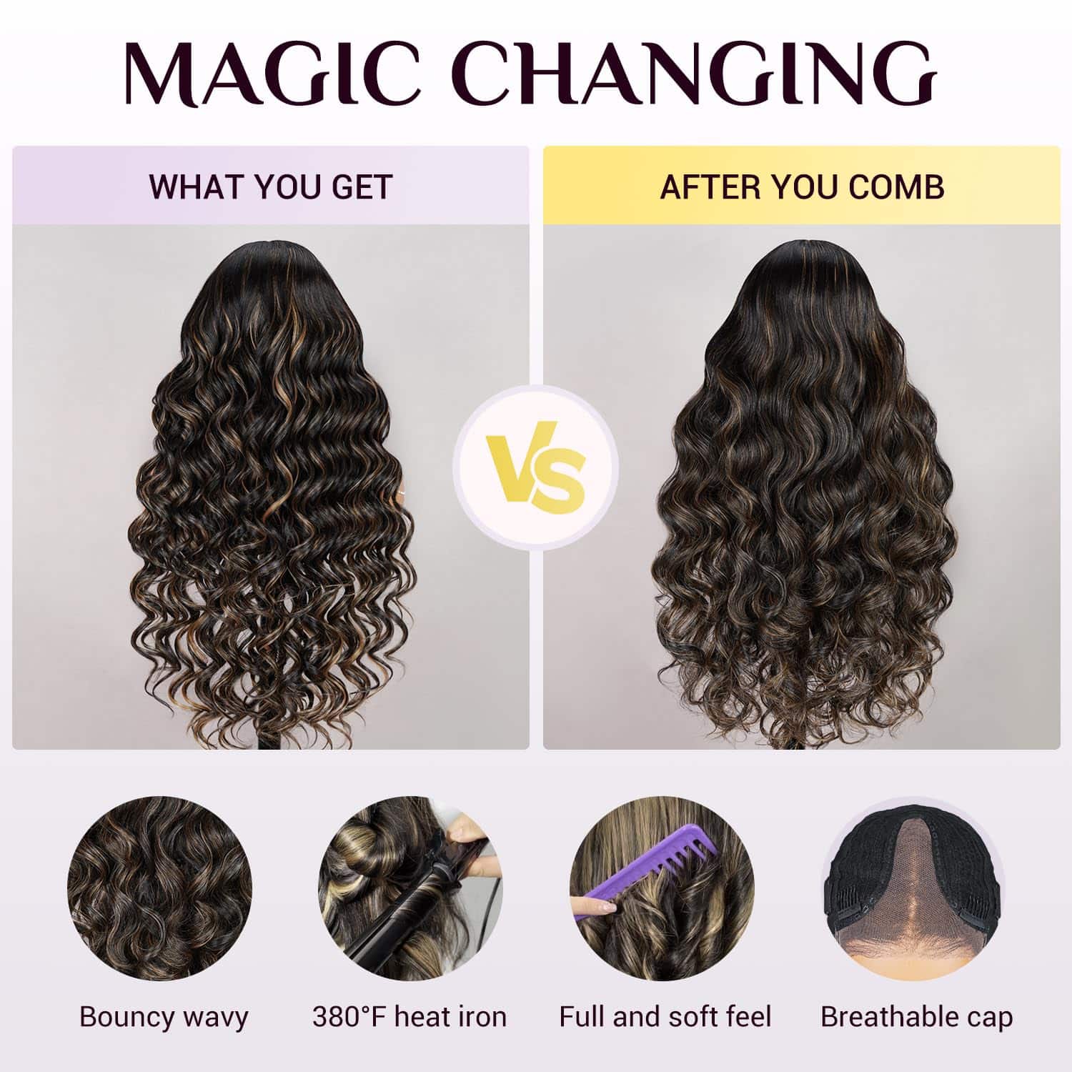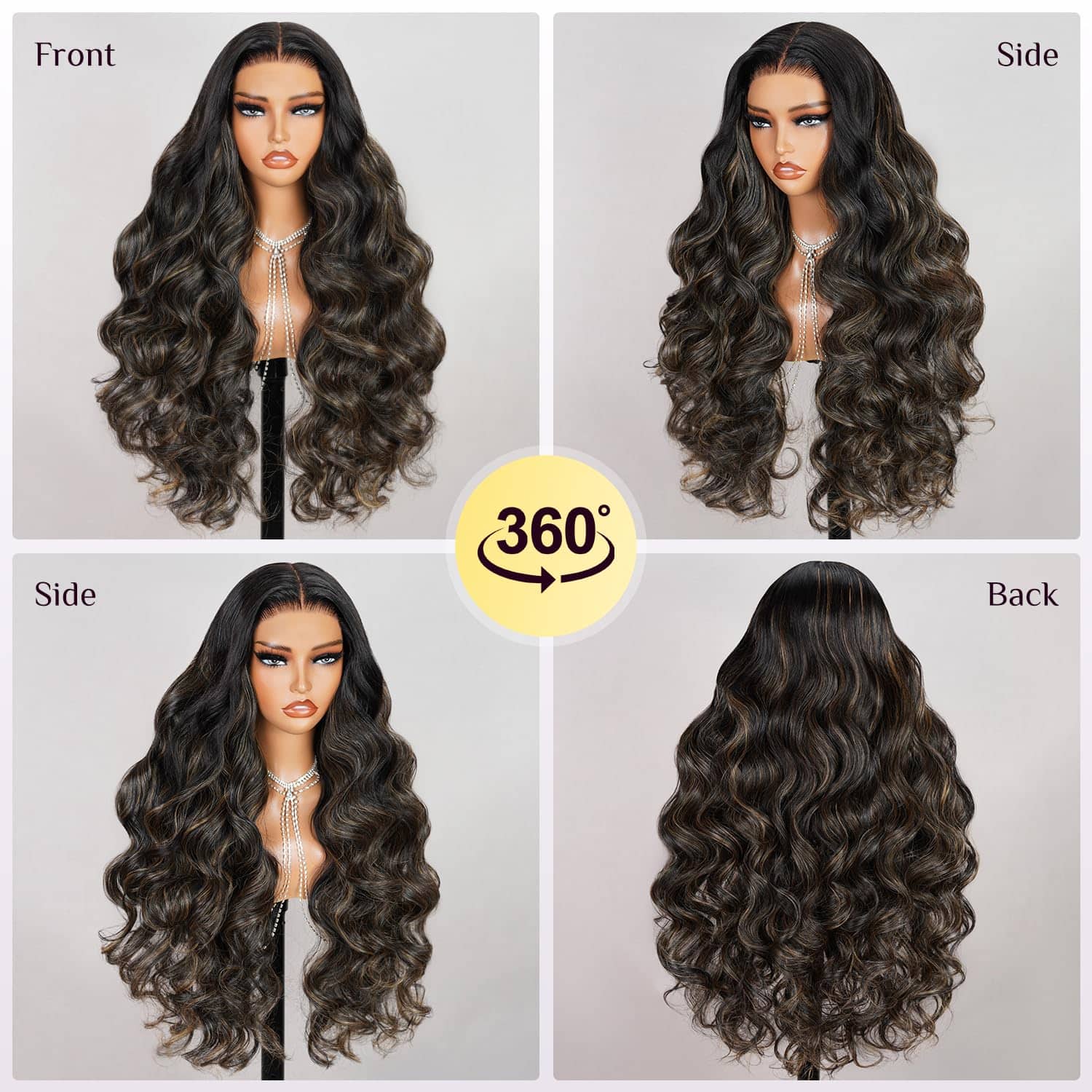 1.Peluca de Destacados Balayage: la mezcla perfecta de dorado y negro para adaptarse a todos los tonos de piel y estilos de ropa y ocasiones, la posición de los reflejos mantendrá la línea perfecta sin importar cómo la separe, y la posición de los reflejos se puede llevar en el medio o un lado.suave y natural, gruesa y sana.
