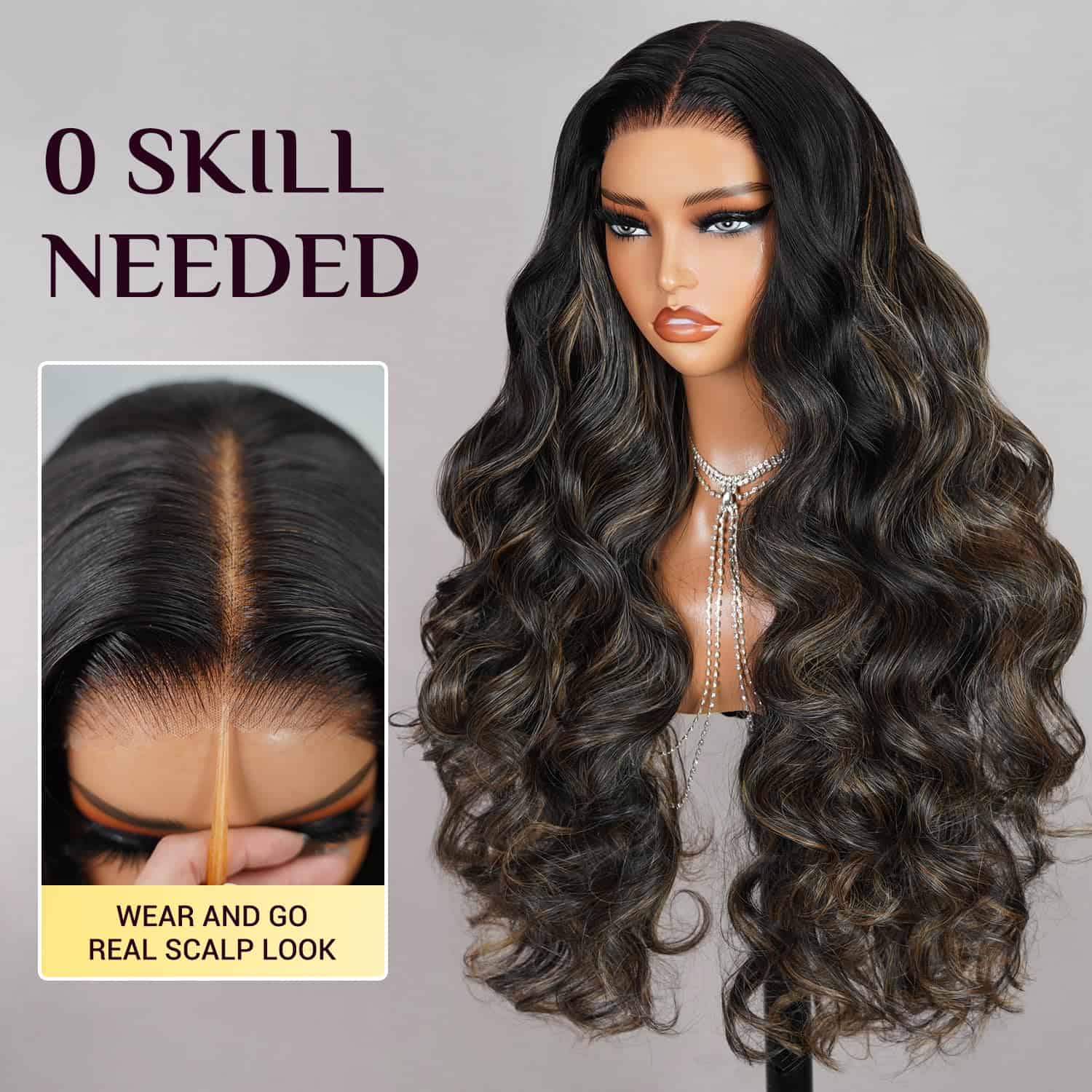 2.Peluca de Pon y Listo sin Pegamento: encaje pre cortado, fácil de poner y llevar, apto para principiantes, 3 segundos para instalarla y 1 segundo para quitarla, muy fácil de manejar esta peluca de encaje ondulado y flexible. Encaje HD, invisible y suave, las pelucas sin pegamento básicamente no tienes que hacer nada con ellas, solo se mezclan perfectamente con un poco de base, parece que crece desde tu cuero cabelludo.
