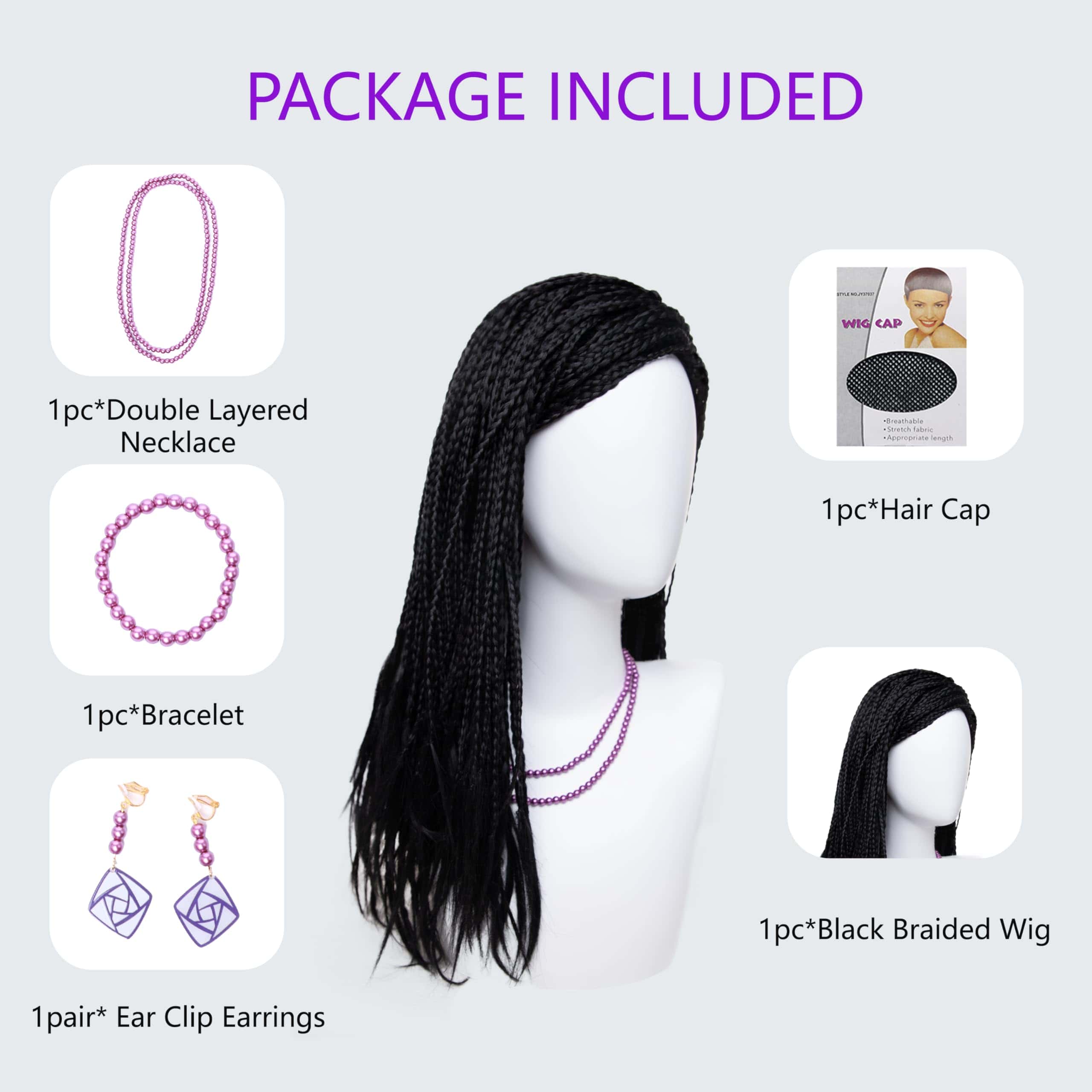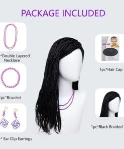1. Incluye: 1 peluca trenzada negra + 1 collar + 1 clip para oreja + 1 brazalete. 2. Correas ajustables para ti: Tamaño de la gorra (50-55 cm/19.7-21.7 pulgadas), con 2 correas ajustables que se pueden fijar en una posición cómoda. Tamaño ajustable de la peluca de cosplay de pequeño a mediano. 3. Personalidad: Puedes llevar esta peluca trenzada negra en muchas ocasiones. Por ejemplo, puedes usar esta peluca para celebrar festivales como Halloween y Navidad, o puedes usarla en fiestas en tu vida cotidiana. Las pelucas pueden ayudarte a presentar diferentes imágenes y mejorar tu belleza. Nuestras pelucas están hechas de cabello sintético, las pelucas de moda lucen naturales, reales y hermosas, y se sienten suaves al tacto. 4. Estilo: Hecho de fibra resistente al calor ecológica y no tóxica, el cabello es agradable de peinar y mantiene su forma, también puedes hacerle permanente, peinar o cortar para crear el estilo que te guste. 5. Nota: El color a veces puede ser un poco diferente a las fotos debido a la configuración de color de su monitor de computadora u otras razones.