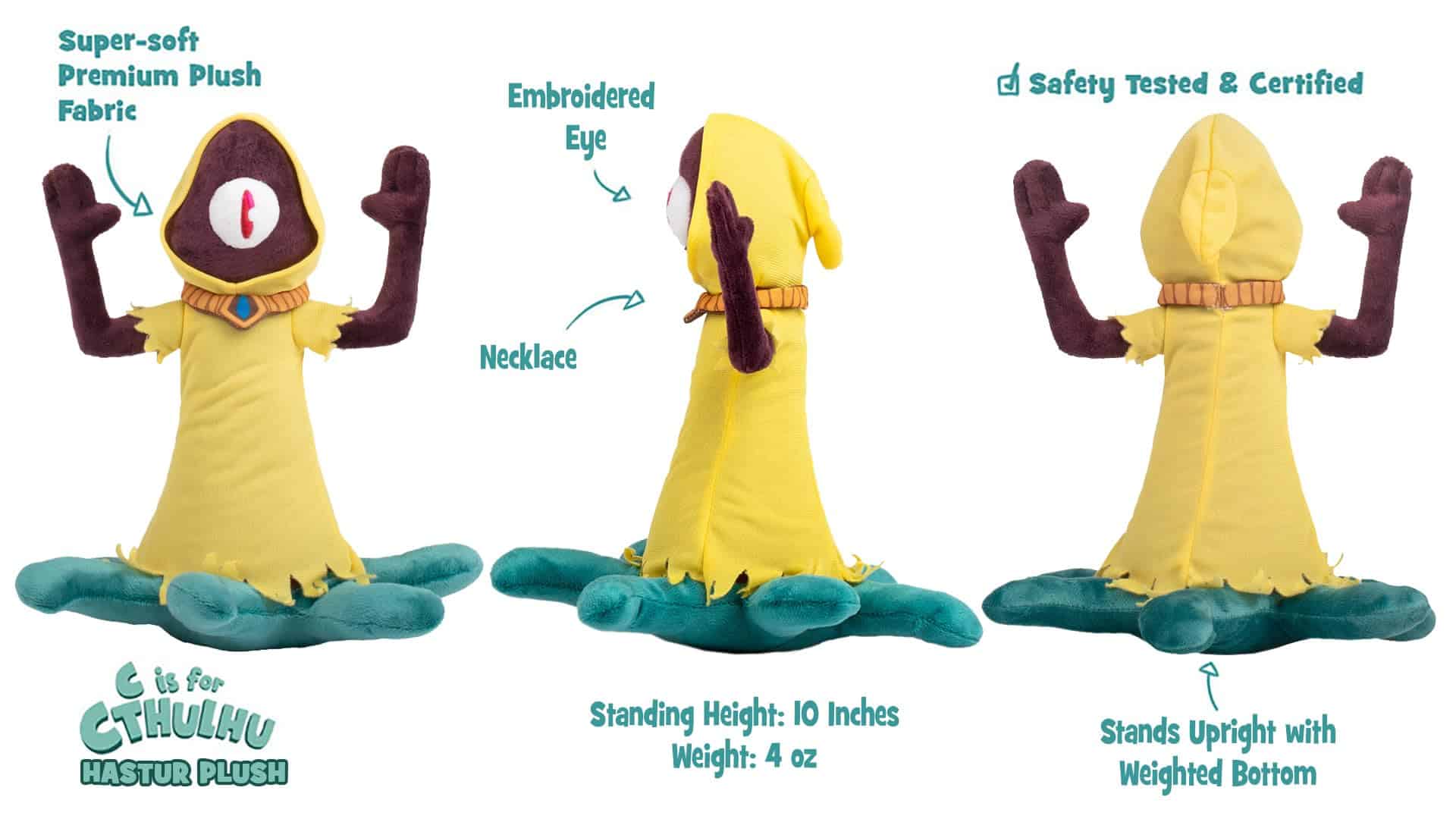 ¡Esperamos que te vuelvas completamente loco por nuestro nuevo y extremadamente adorable juguete de peluche de Hastur, el Rey de Amarillo, traído a la vida desde las páginas de C es para Cthulhu: El libro del abecedario de Lovecraft! Según Lovecraft, «Hastur es el Indecible, que no debe ser nombrado, porque pronunciar su nombre es invocarlo, ¡y aquellos que lo ven son llevados a la locura!» Conocido como el Rey de Amarillo y el gobernante de la ciudad perdida de Carcosa, el misterioso y poderoso Hastur es el señor del caos.