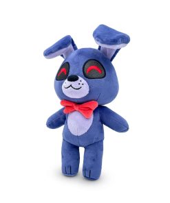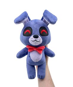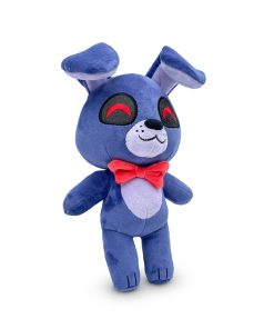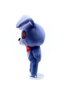 «¡El peluche Soy yo, tu viejo amigo conejito Bonnie aquí! ¡Bonnie salta a su debut de peluche! Con 9 pulgadas de altura y las orejas más grandes que hayas visto. Una gran sonrisa irradia desde su hocico gris mientras sus ojos rojos vibrantes exudan alegría. Su corbata roja perfecta permanece firmemente en su cuello mientras sus brazos flojos descansan a los lados de su cuerpo morado perfecto. ¡Este peluche es minky, hecho de 100% algodón PP súper suave y listo para abrazar!»