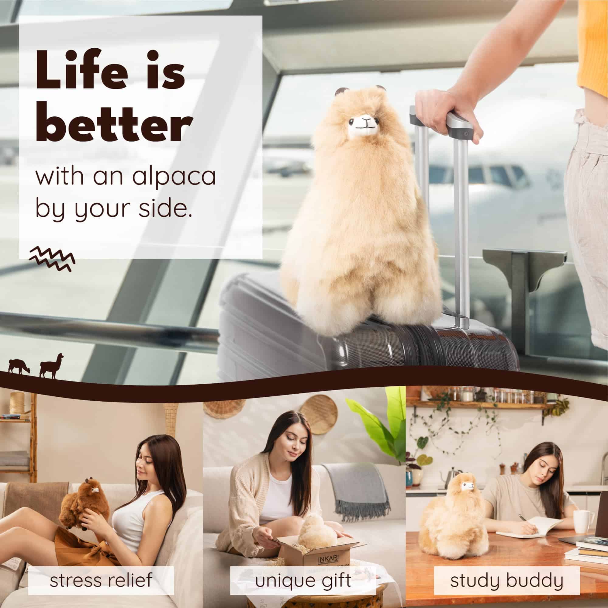 1. SUPER DULCE Y ESPONJOSO Nuestros peluches de alpaca hechos a mano con lana de alpaca 100% real no solo son absolutamente lindos y súper esponjosos, sino que también son el regalo perfecto para niñas y niños. 2. REGALO PERFECTO Nuestros peluches de alpaca son regalos ideales para niñas y mujeres y los regalos de cumpleaños perfectos para niñas y niños. ¡Solo puedes ENAMORARTE de este pequeño paquete de pelo! 3. CRIANZA SOSTENIBLE DE ALPACAS Amamos a las alpacas por sobre todo. Nuestra lana de alpaca proviene de criadores de alpacas y llamas seleccionados a mano que han vivido junto a sus animales en las altas montañas de los Andes durante generaciones. 4. HIPOALERGÉNICO La lana de alpaca, a diferencia de la lana convencional, es extremadamente suave e increíblemente suave. Además, en comparación con la lana de oveja, carece de lanolina, lo que la hace hipoalergénica e ideal para quienes sufren de alergias a la lana. 5. RESPONSABILIDAD SOCIAL Con cada peluche vendido, donamos una pequeña parte a proyectos sociales en Perú e invertimos en colaboración con nuestros socios peruanos para crear aún más productos hermosos.