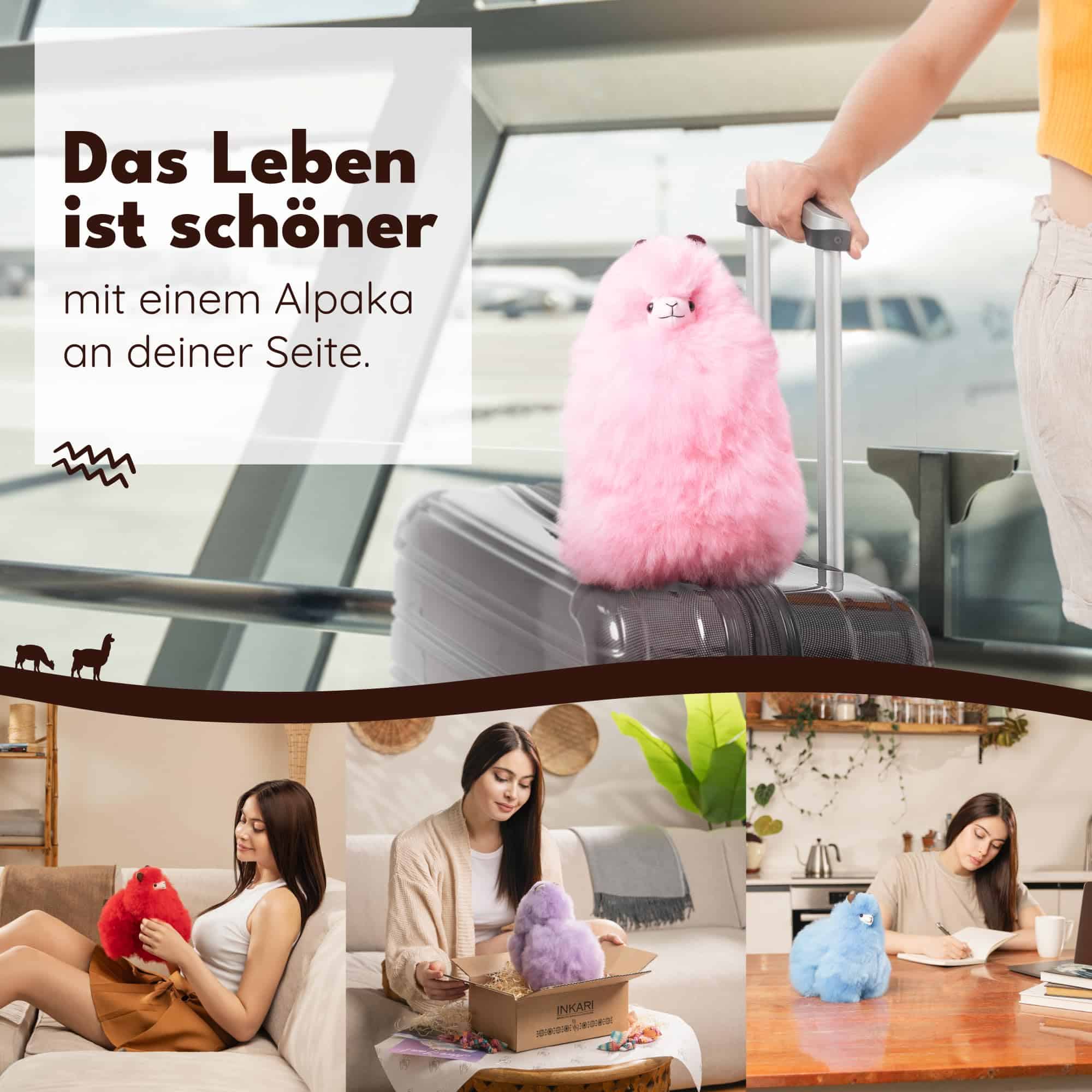Nuestros peluches de alpaca hechos a mano con lana de alpaca 100% real no solo son adorables y súper suaves, sino también el regalo perfecto para niñas y niños. Nuestros juguetes de alpaca de peluche son regalos ideales para niñas, regalos para mujeres y los regalos de cumpleaños perfectos para niñas y niños. ¡Solo puedes ENAMORARTE de este pequeño montón de pelo! Amamos a las alpacas sobre todo. Nuestra lana de alpaca proviene de criadores de alpacas y llamas seleccionados a mano que han vivido juntos con sus animales en lo alto de los Andes durante generaciones. La lana de alpaca, a diferencia de la lana convencional, es extremadamente suave e increíblemente suave. Además, en comparación con la lana de oveja, carece de lanolina, lo que la hace hipoalergénica e ideal para aquellos que sufren de alergias a la lana. Con cada peluche vendido, donamos una pequeña parte a proyectos sociales en Perú e invertimos en colaboración con nuestros socios peruanos para crear aún más productos hermosos.