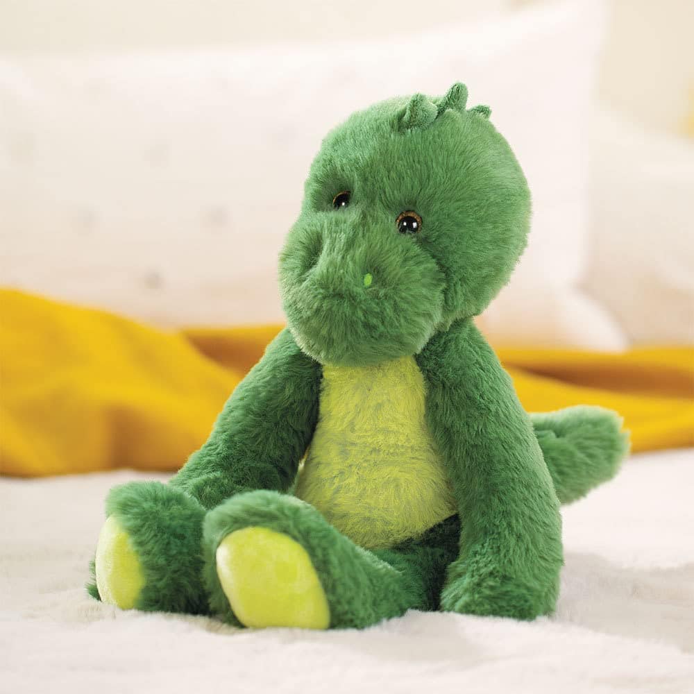 1. Pelaje acogedor para abrazos suaves de Dinosaurio – Hecho de pelaje verde extra suave y premium para una capacidad de abrazo superior; este amigo es un fabuloso compañero para la siesta, el juego y la hora de dormir.