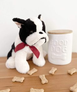 ¡Francois, el Bulldog Francés, está listo para conocerte! Es increíblemente adorable en pelaje blanco y negro con un llamativo pañuelo rojo.